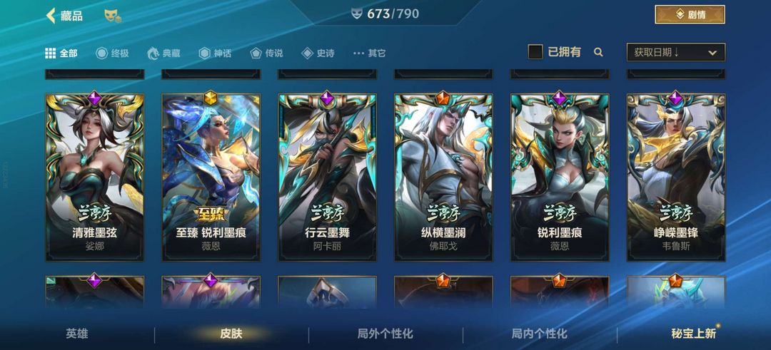 675皮肤 1️⃣终极④典藏30神话99传说青花瓷 群英最新兰亭墨韵全套 战旗 步生幽 泸溪河