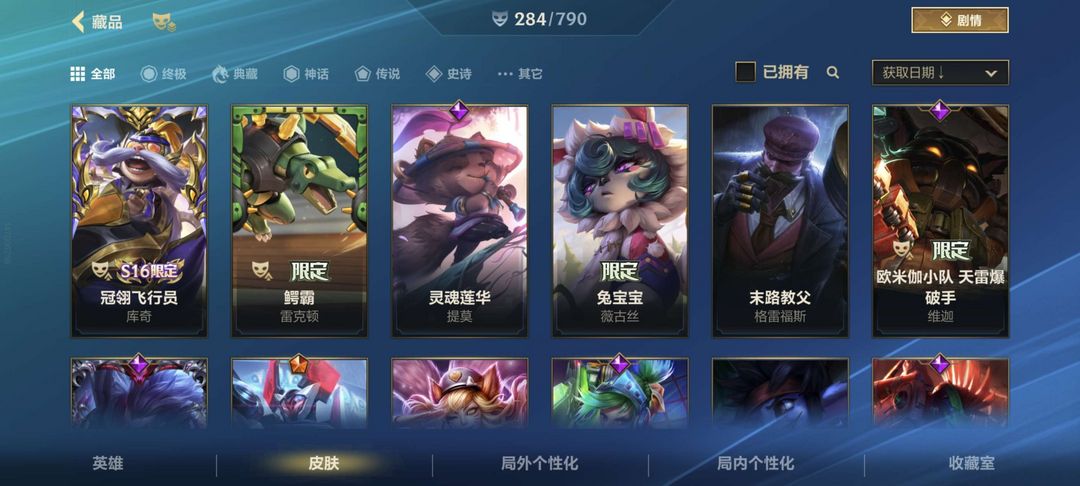 宗师排位可玩,全英雄,284个皮肤5神话38传说