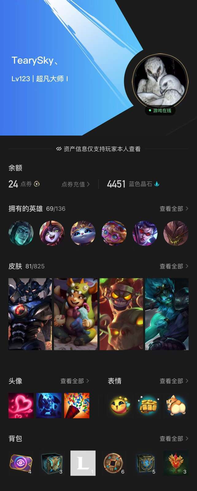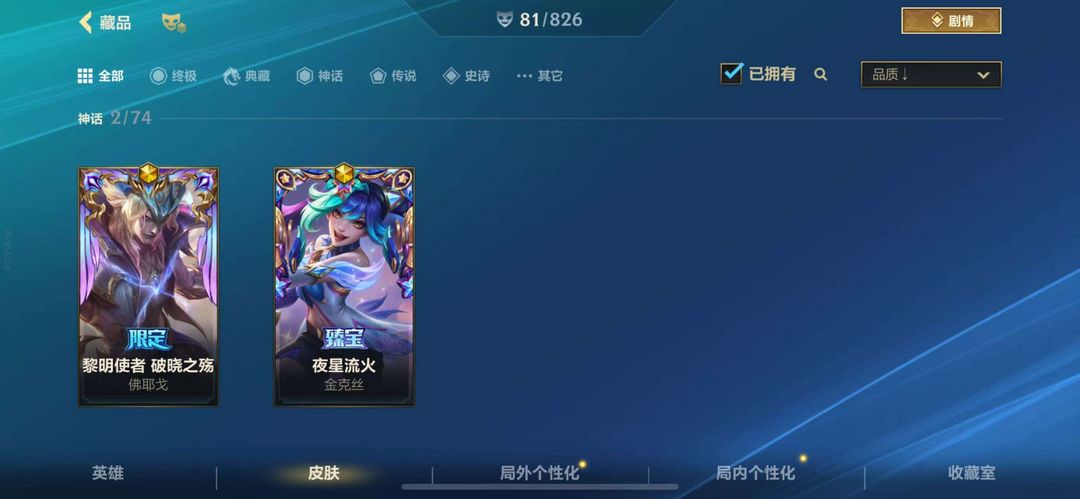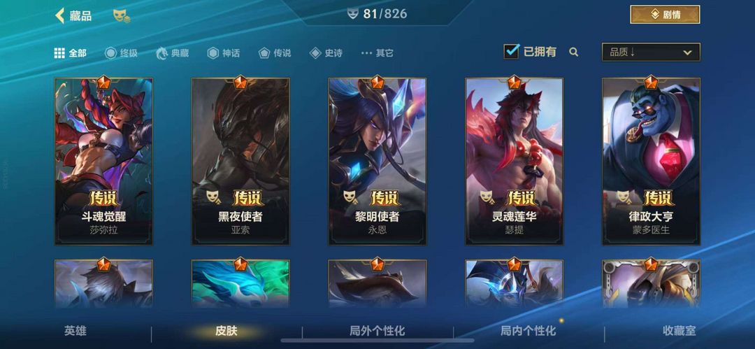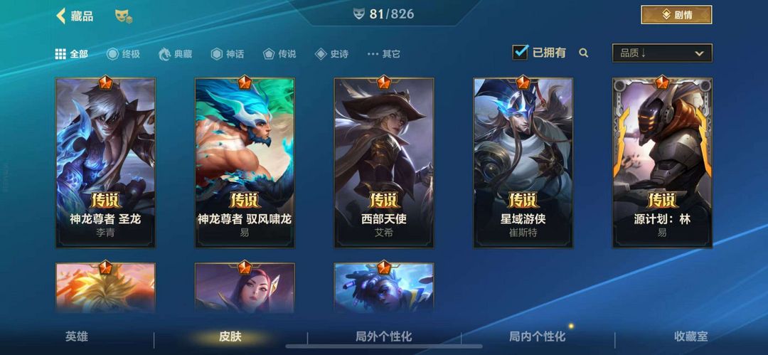皮肤质量比较高,看图参考,这号主玩剑圣,艾克国服50艾克,省10剑圣