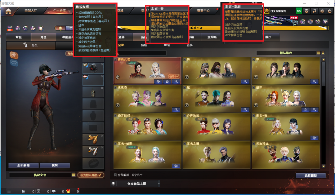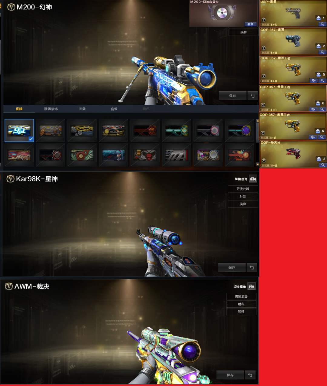 装备描述:排位:可以---------爆破四防:幻神音效(冠军之幻皮肤)、98K星神、、、、USP雷暴、COP雷霆、COP堕天神、3个COP雷霆王者、、、、传说光耀、白虎、QBZ金色蔷薇、、、幻神音效、雷神音效、毁灭音效、黑龙音效、极光音效、火麒麟音效、黑骑士音效、、、7套雷霆、4套雷暴、7套堕天神、1套雷霆王者、、、爆破四防(传说女帝、王者春、王者魅影)