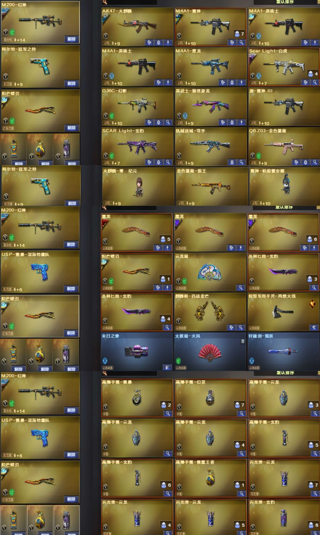 ♥幻神星火N9♥巅峰裁决三件套♥AG星神三件套♥AG毁灭三件套♥G36幻影深海雷暴满副手冠军蝶刃玄豹