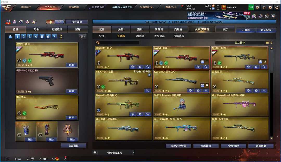 神威莲华丨星耀幻神音效卡丨流光裁决音效卡丨炼狱奇幻狮子国王丨炽芒蝶刃丨六盘六烈白虎QBZ等。