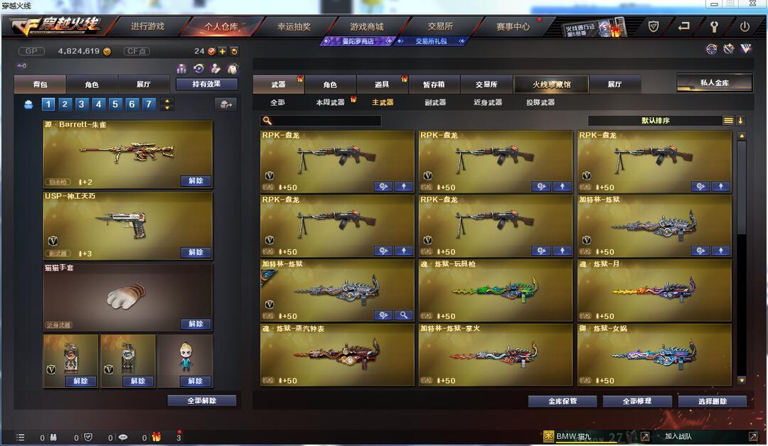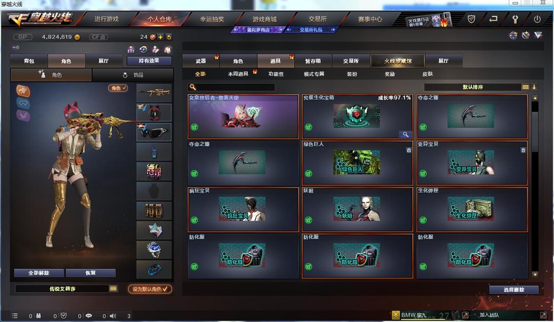 装备描述:6烈龙斯泰蝴蝶5盘龙七炼狱玩具枪生化全套装传说艾丽莎神工套虎将大圣心动挑战全套装不掉血