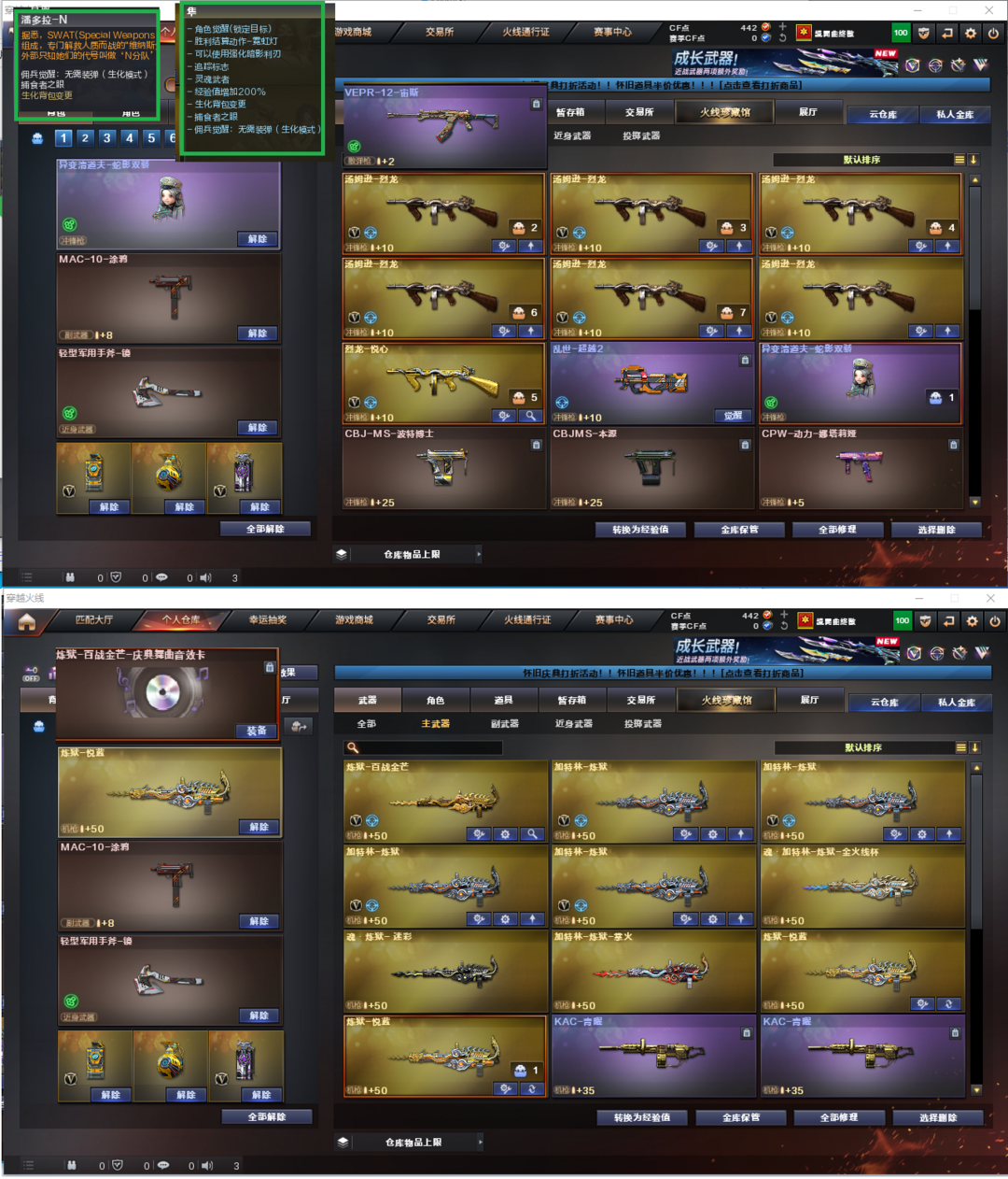 限制: 租号2次及以上 |装备描述:排位:可以、、、、、、、生化全装(变更背包、可以查看生化僵尸血量):无需换弹、6烈、5炼狱+音效、VPER-12-宙斯、异变清道夫-小人枪、死亡之眼、 MAC-涂鸦、手斧镜、生化雷、超级对讲机、全部弹匣、、、、、、、、、爆破四防:幻神3皮+音效(23白鲨、24AG冠军、电流骇客皮肤)、星神-枪娘默、、、、COP雷霆、23白鲨柯尔特、玄豹左轮、、、、FAMAS G2-天戎、白虎玄豹、王者凌虎、白虎、、、、、幻神音效、裁决音效、蔷薇音效、雷神音效、毁灭音效、炼狱音效、火麒麟音效、黑骑士音效、、、、2套雷霆、4套玄豹、1套雷霆王者、、、生化四防(隼、潘多拉-N)、爆破四防(玄豹、王者迷迭香)