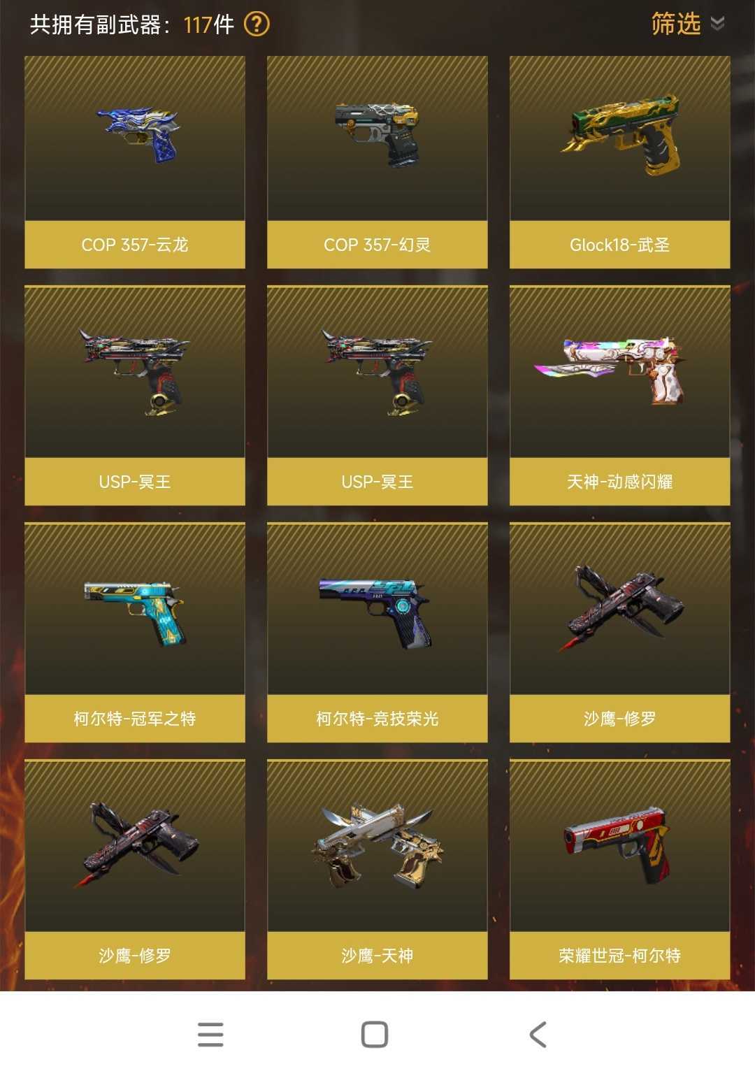 五传说,女帝,传说幻神、2幻神8皮加音效卡,狙击枪都有皮加音效卡。两炽芒蝶刃斯特尔3把可以卡无限子弹