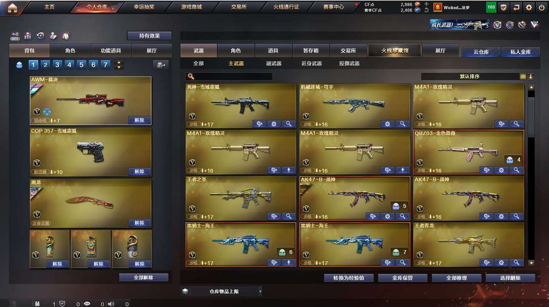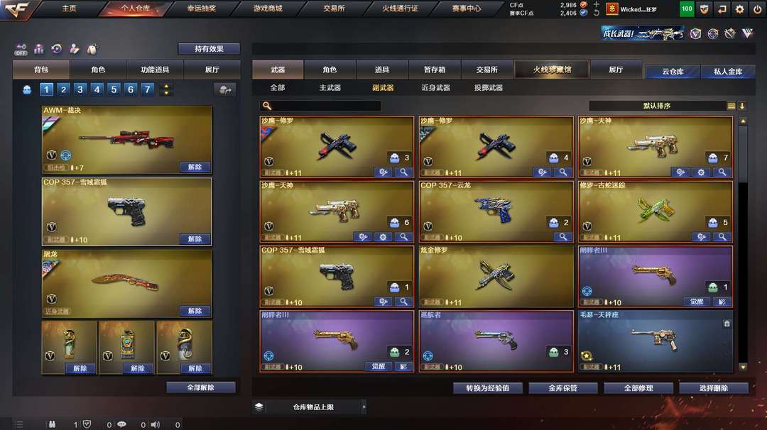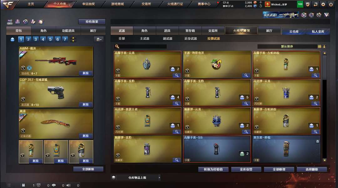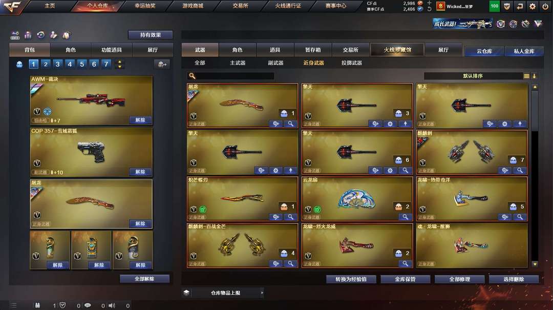 装备描述:王者凌虎,王者星霆,裁决三件套,蝴蝶刀,cop云龙cop雪域霜狐带5副手,5烈