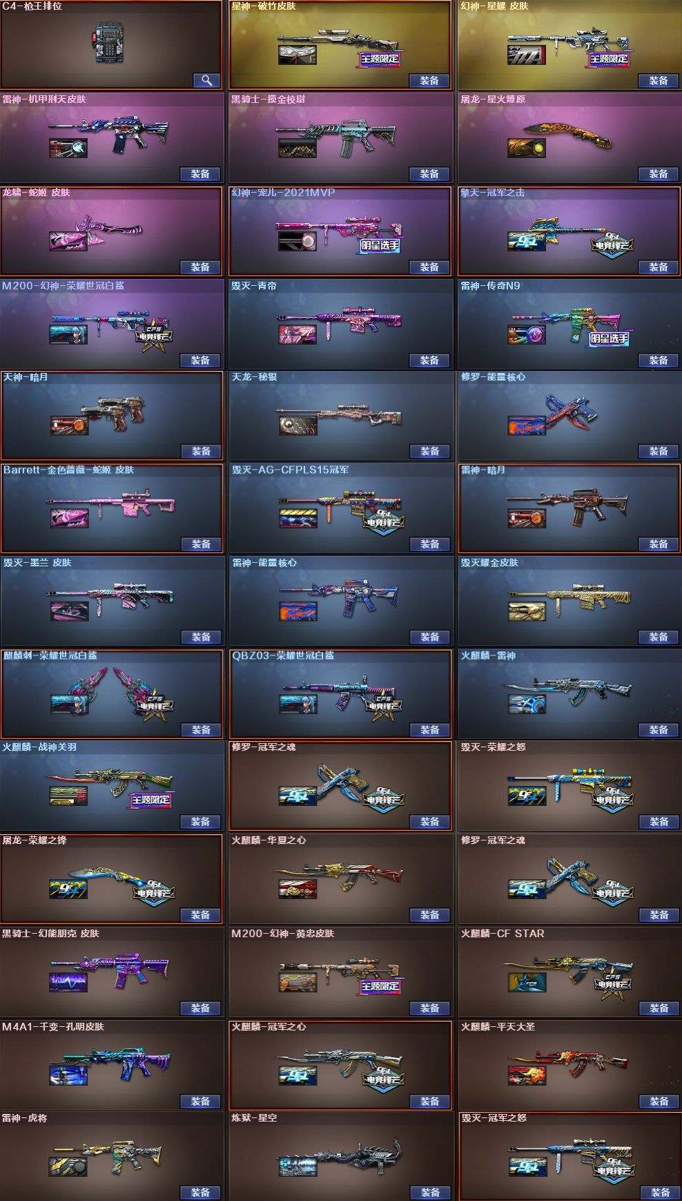 ✅优质生化爆破✅传说影煞✅4皮幻神音效卡✅竞技荣光雷霆雷暴云龙套✅雷神黑骑三件套✅热门V齐✅炽芒蝶刃
