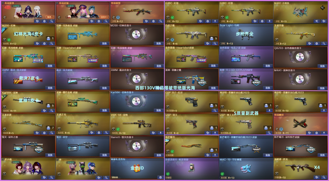 限制: 租号2次及以上 | 撤单率<60%才可租用此帐号装备描述:✅爆破: ✨2传说武器 传说夜影 | 传说幽冥 ✨英雄级角色 4防传说影煞 | 4防星骇 | 关小雨 | 隼 | 4防王者沙漠玫瑰 ✨幻神4皮带卡 | 幻神-光海夜岚 | 幻神-传奇欧欧 | 幻神-HeartShot女团 | 幻神-电流骇客 | 幻神音效卡 ✨星神1皮卡 | 星神-傲竹金蛇 | 星神音效卡 | 王者星霆 ✨裁决皮卡 | 裁决-流光秘银 | 裁决-凤灵 | 裁决音效卡 ✨毁灭带卡 | 毁灭-冠军之怒 | 毁灭-星空 | 毁灭音效卡 | 王者之光 ✨QBZ03金色蔷薇 | 金色蔷薇-电竞之星 | 金色蔷薇-HeartShot | 金色蔷薇音效卡 ✨白虎之魄 | SCAR Light-马枪 | G36C幻影*2 | M4A1-小神龙 ✨雷神 | 雷神-荣耀之魄 | 雷神-LGD | 雷神音效卡 ✨5把质量副武器: 1)柯尔特*2 = 柯尔特-荣耀世冠白鲨*2 2)USP*2 = USP冥王 | USP神工天巧 3)COP*1 = COP幻灵 4)传说幽冥 ✨4烈龙 | 异变清道夫-蛇影双骄 | MAC-10-千针棘鲨