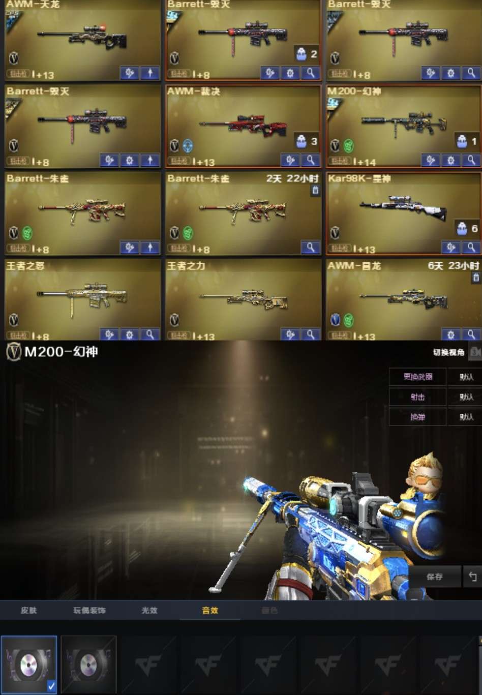 幻神冠军之幻音效卡+星神裁决白虎+雷暴套+堕天神套+5把英雄级COP+世冠科尔特+USP雷暴+蝴蝶刀
