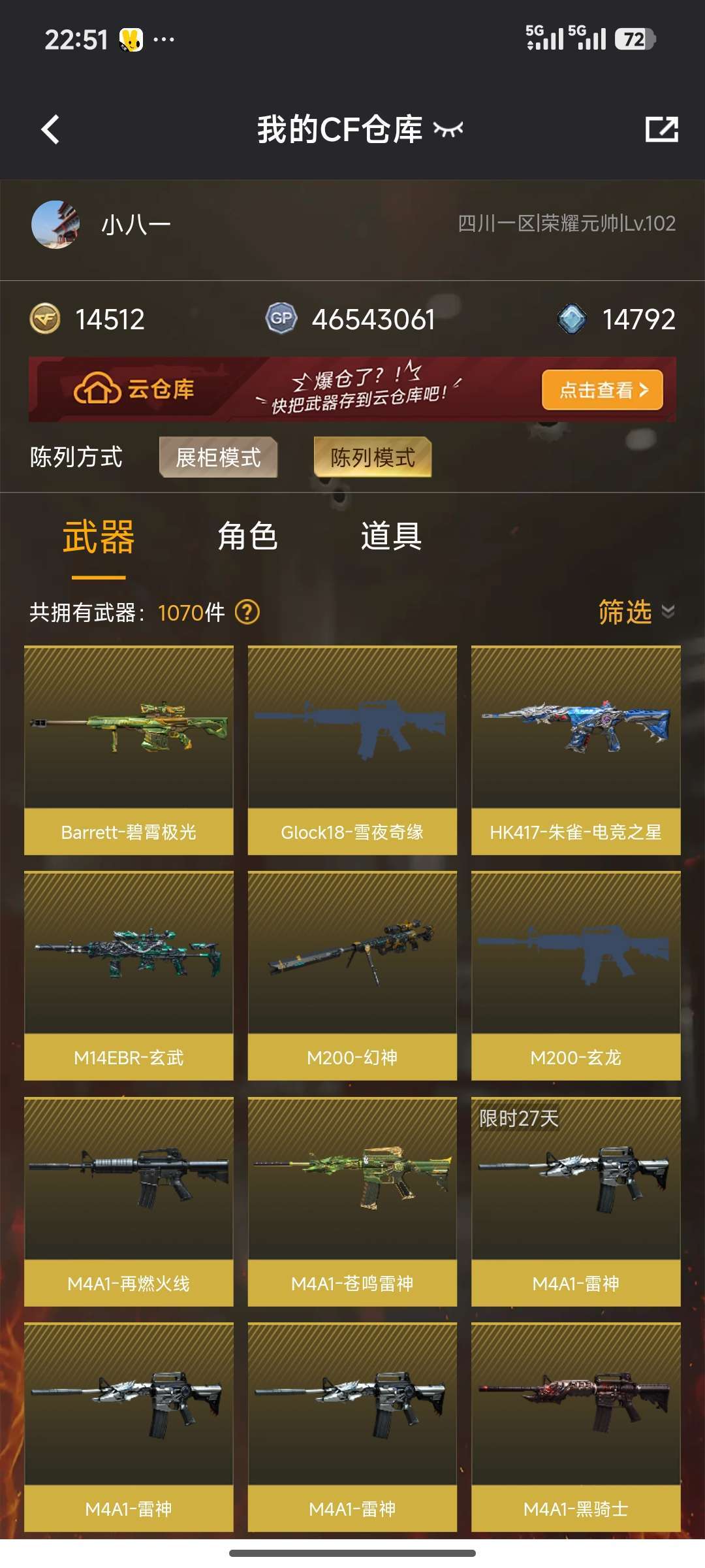 游戏区服:穿越火线-电信区-四川一区