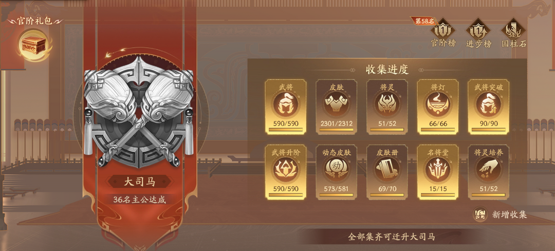 614将全武将前50大将军几万豆,准大司马,只缺个位数皮肤和水晶,大司马体验,国士皮肤全拿