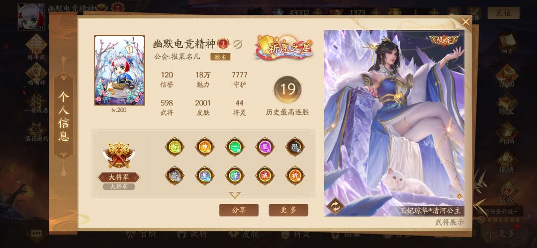 限制: 撤单率<50%才可租用此帐号装备描述: 登入游戏后上局游戏未结束也请不要逃跑。本账号到时不下。但因质量很好单子非常多 被顶了就是出单了,如果不相信可以收藏下来 被顶了去看一下 账号免押金 禁止任何形式掉信誉分。一单一审掉分必拉黑 全武庙(武诸葛陆逊关羽武皇)全扩武将(598个 差几个天牢)恒阶等新将全拿 每期新将必拿 神赵云曹纯关索等等将灵都是全