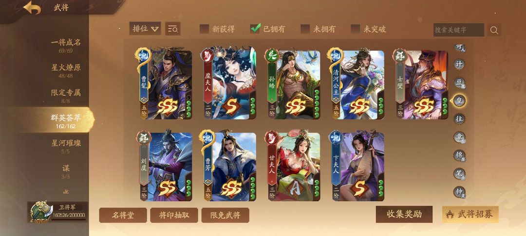 装备描述:威张辽 神黄忠马超张飞邓艾姜维 谋司马师黄盖曹昂 乐蔡文姬貂蝉小乔 曹芳薛灵芸许靖许劭周宣张璇张遥孙茹陈圭赵襄曹婴络统钟毓等