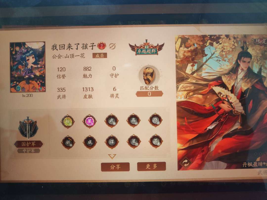 v7满级号,国护军,三百多武将一百多皮肤皮肤
