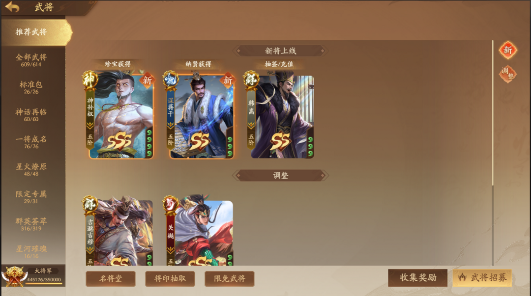 满信誉全武庙609将大将军,全扩仅缺高山上兵,神孙权谋蒋干韩嵩以及钟毓传说皮已拿,更新看简介