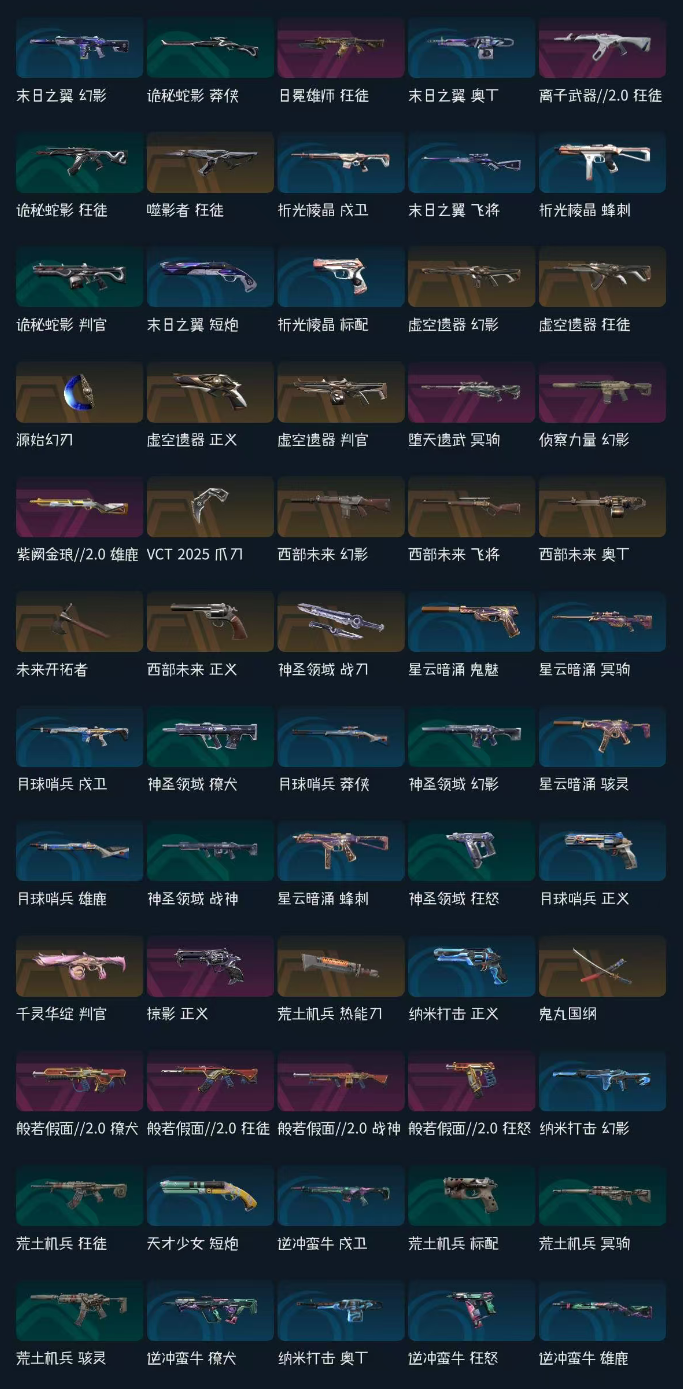 装备描述:15w库存3000r⭐22刀⭐VCT爪多弥尔25冠光荣显卡22冠噬影虚空西部掠影2光谱神中神混沌般若