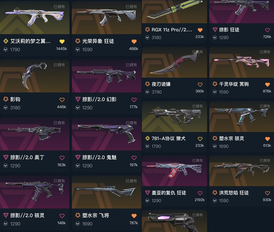 可排❤️猫猫梦之翼光荣异象盖亚洪荒❤️掠夺爪刀显卡蝴蝶刀夜刃诡镰❤️莲花冥狙塑水宗飞将❤️781獠犬