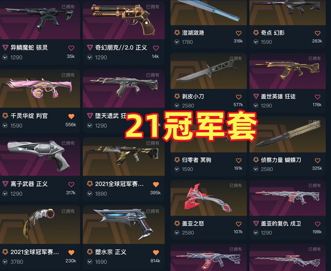 禁排✅精品21冠军套装.剥皮小刀蝴蝶刀鱼扇.弃王猴子盖亚狂徒.塑水宗离子朋克正义.莲花判官.蛇年骇灵