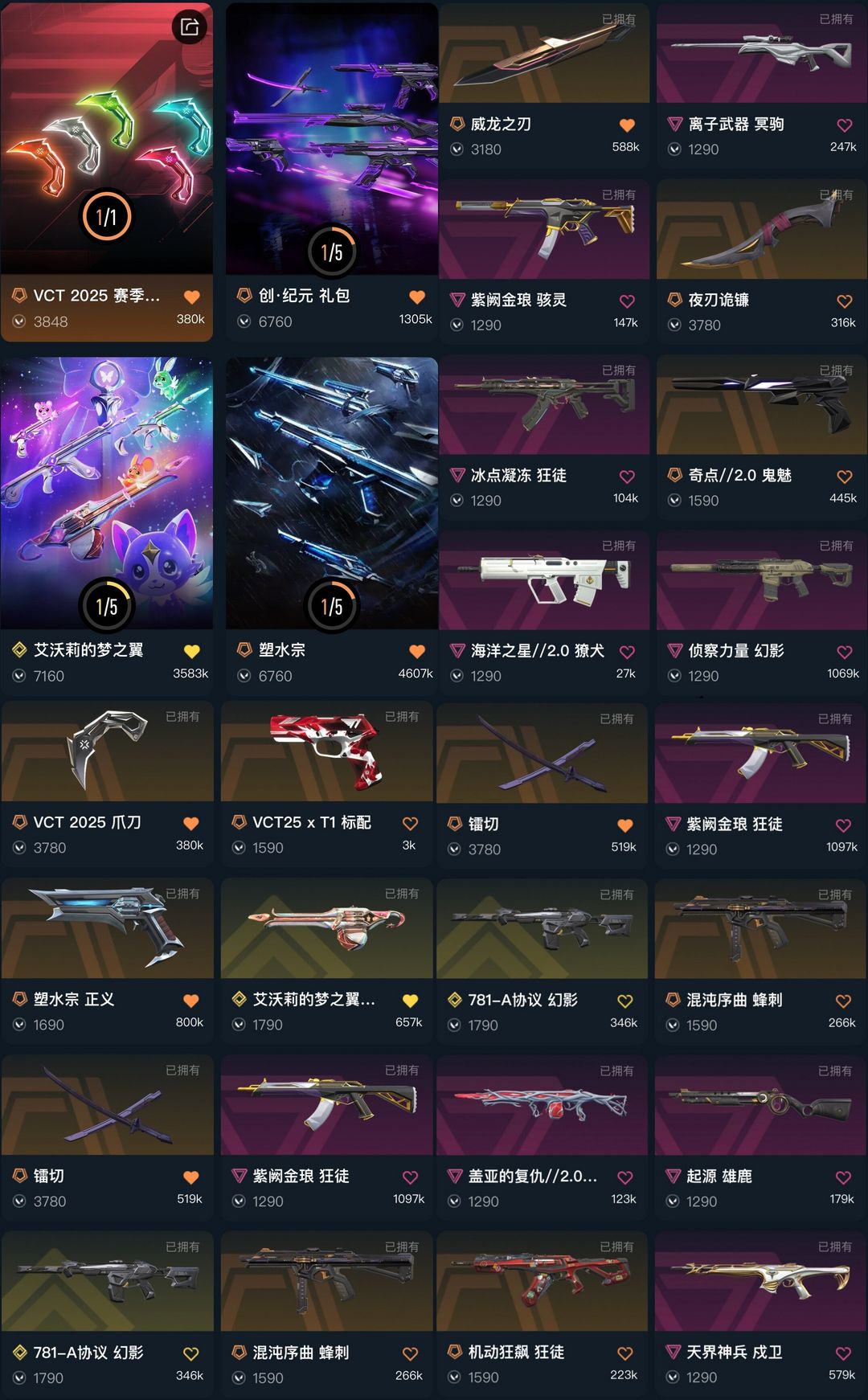 禁排✅vct爪刀镭切威龙之刃.紫金冰点摩托.离子大狙.塑水宗正义.781侦查M4.猫猫奥丁.天界戍卫