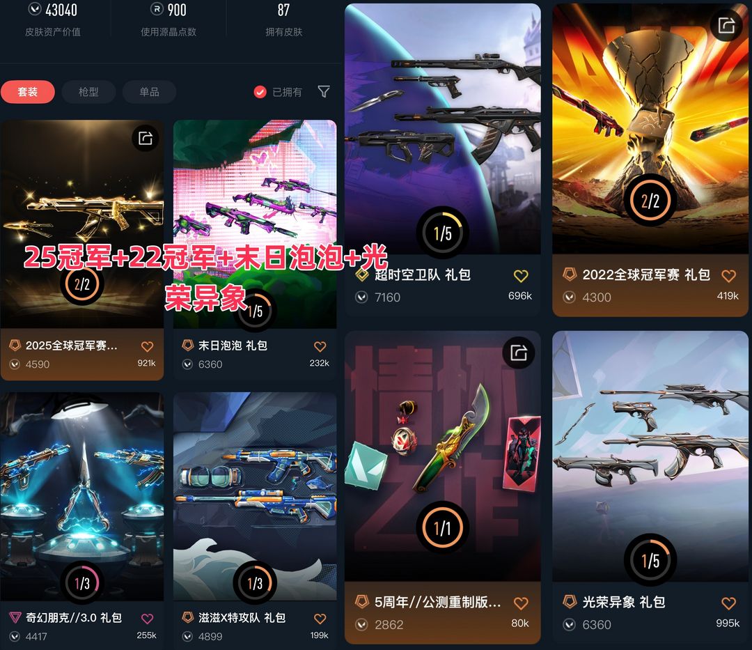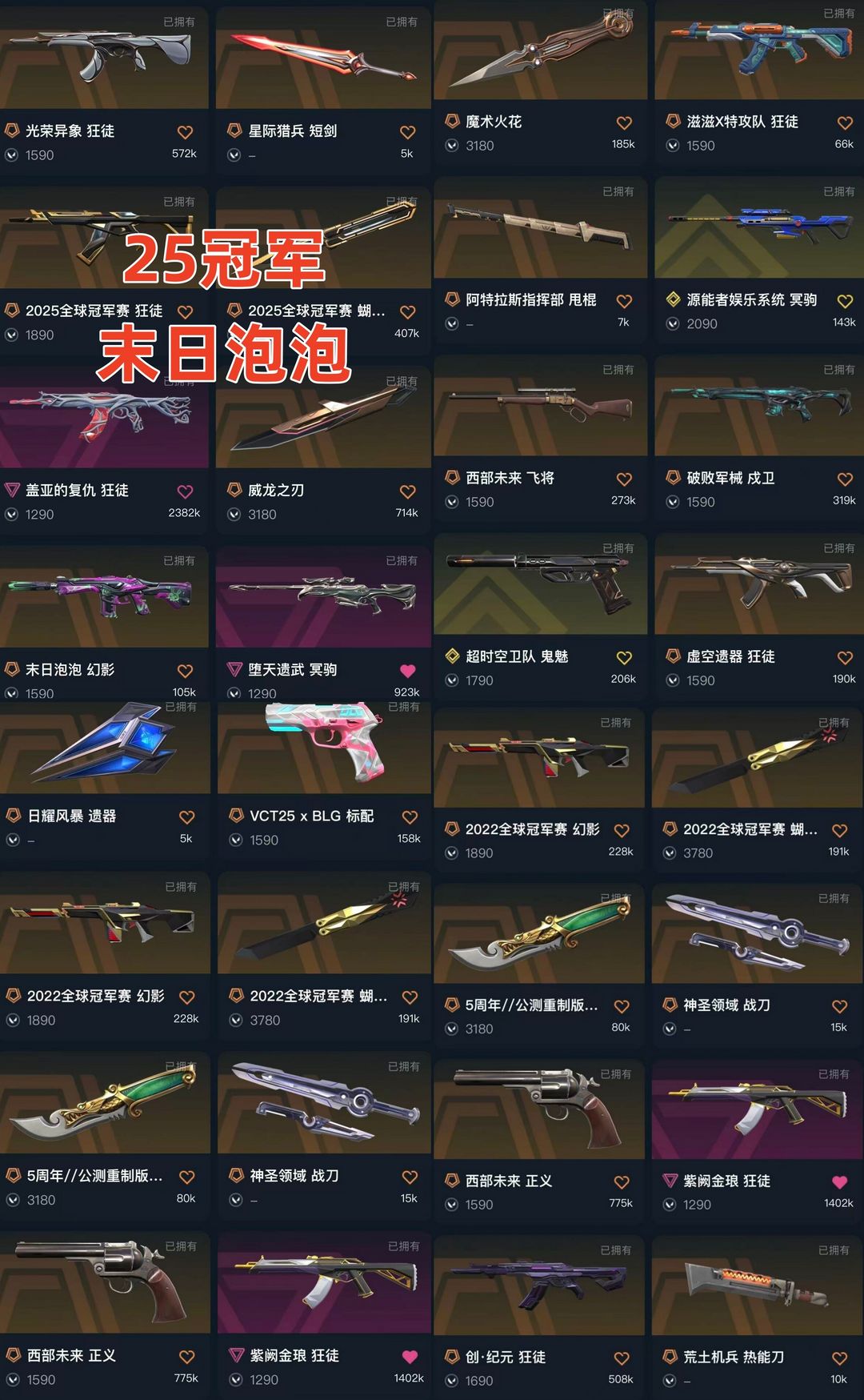 可排✅2522冠军套⭐末日泡泡⭐光荣异象⭐创纪元⭐虚空遗器⭐紫金⭐西部未来正义⭐破败戍卫⭐VCT标配