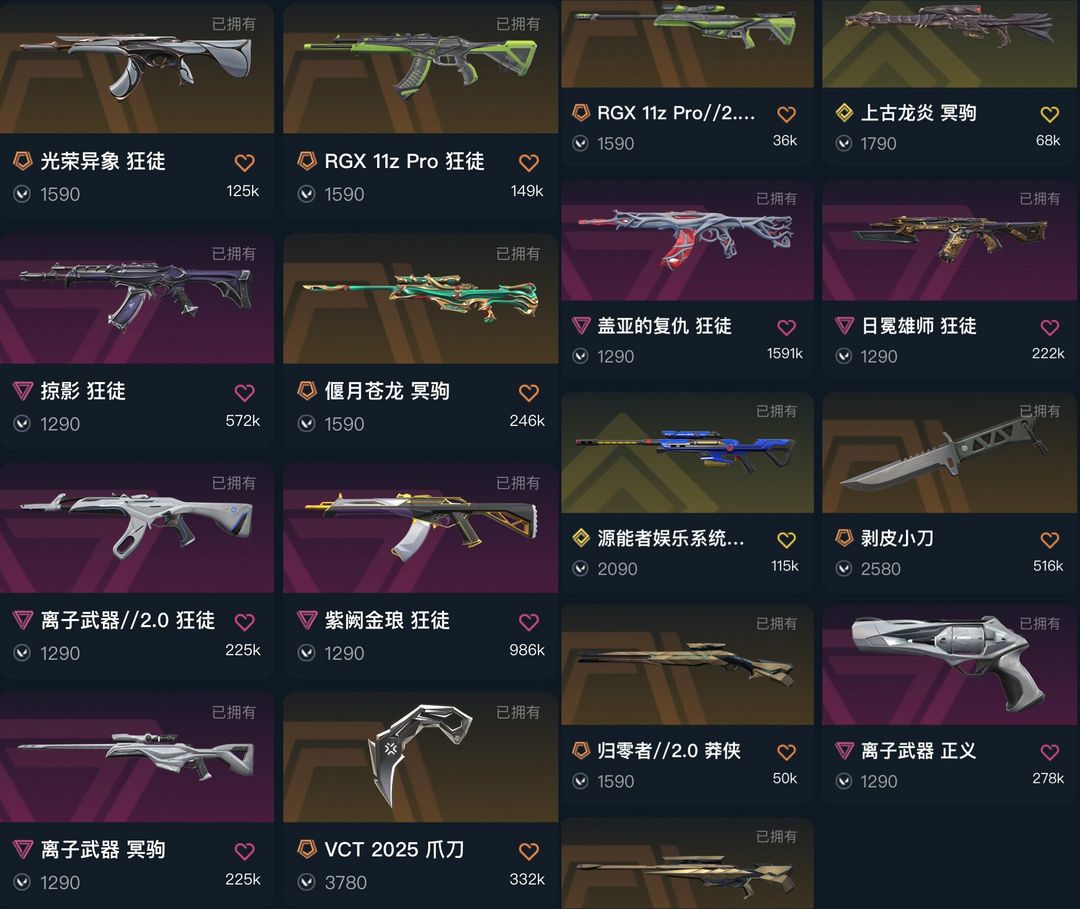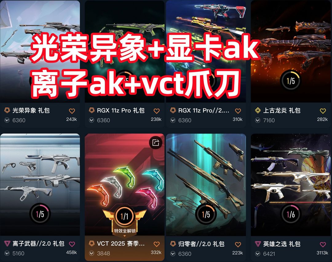 可排✅光荣异象⭐显卡1.0⭐离子2.0⭐VCT爪刀⭐上古龙炎⭐掠夺盖亚⭐归零者⭐剥皮小刀