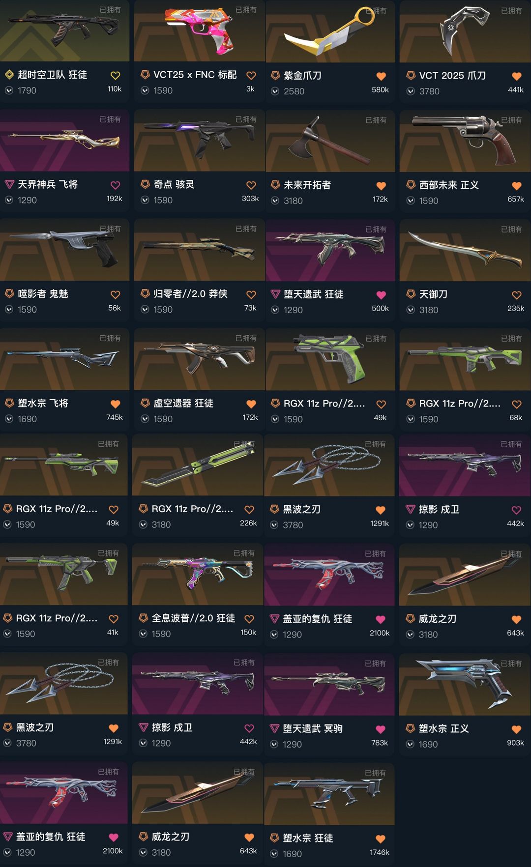 可排✅塑水宗盖亚显卡弃王超时空卫队虚无★vct爪刀蝴蝶刀天御刀黑波威龙之刃紫金爪★vct标配★噬影者