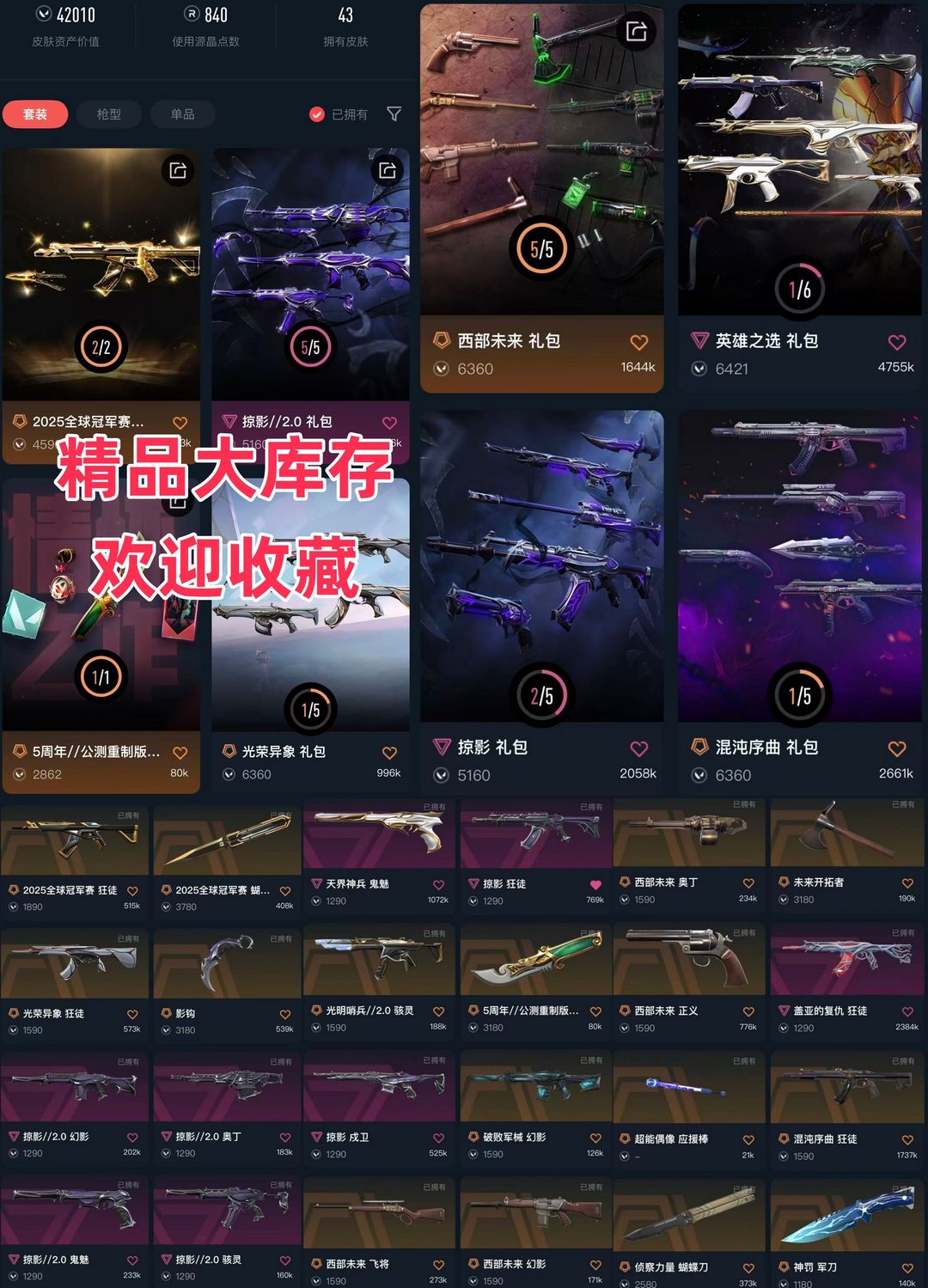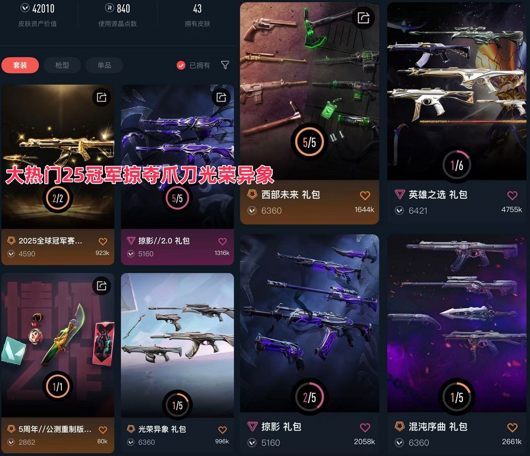 可排✅25冠军⭐光荣异象掠夺爪刀⭐神罚侦查蝴蝶刀⭐西部未来套装⭐盖亚混沌掠夺狂徒⭐破败幻影⭐天界鬼魅