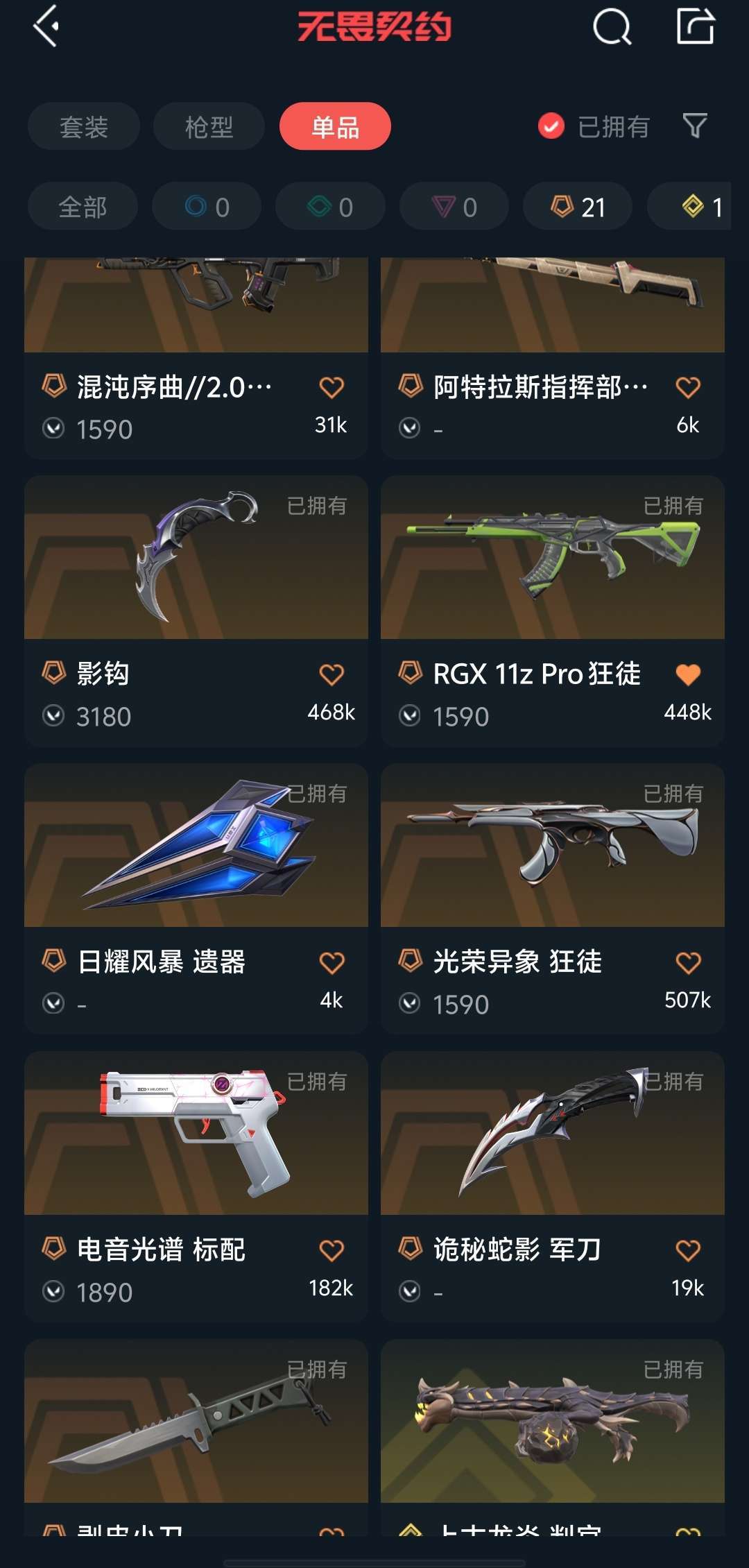 传奇数量:21