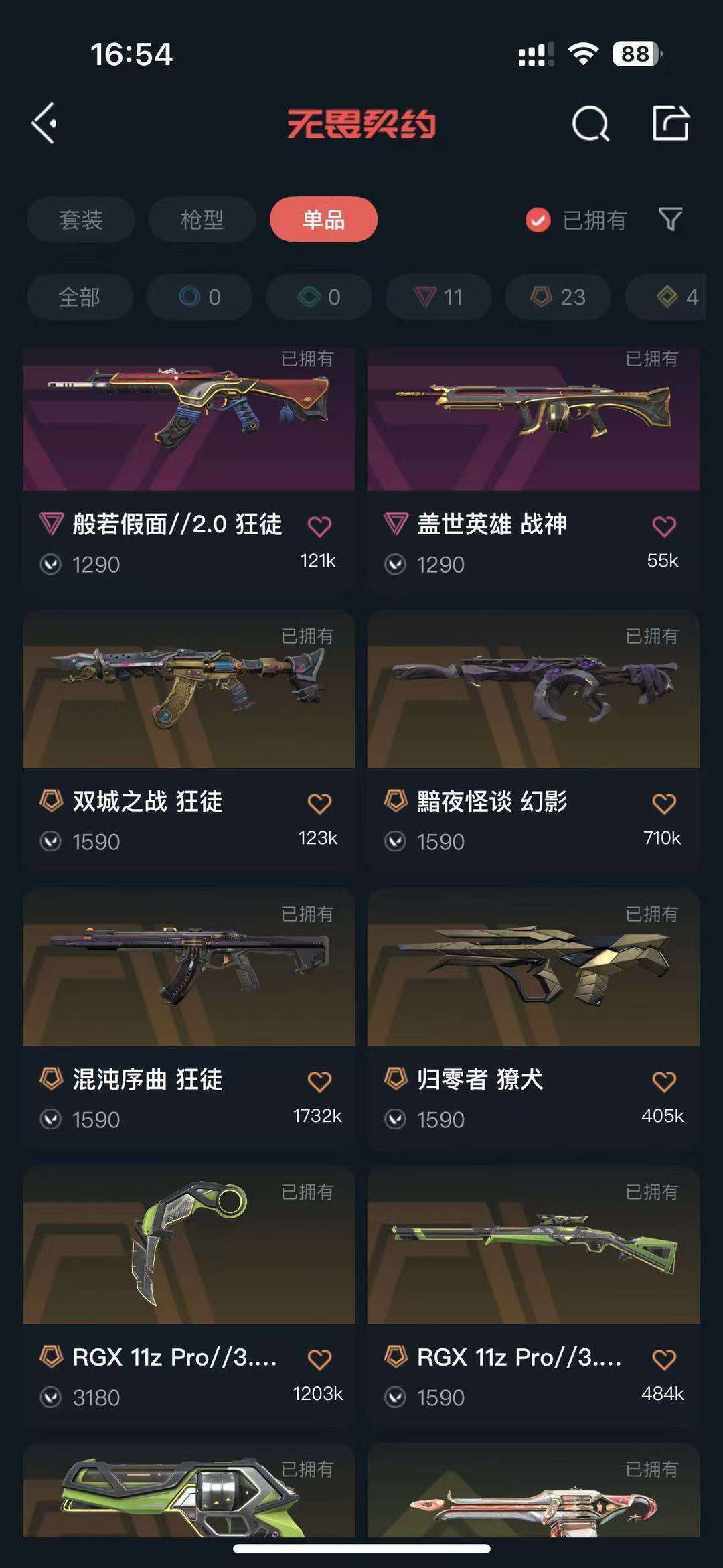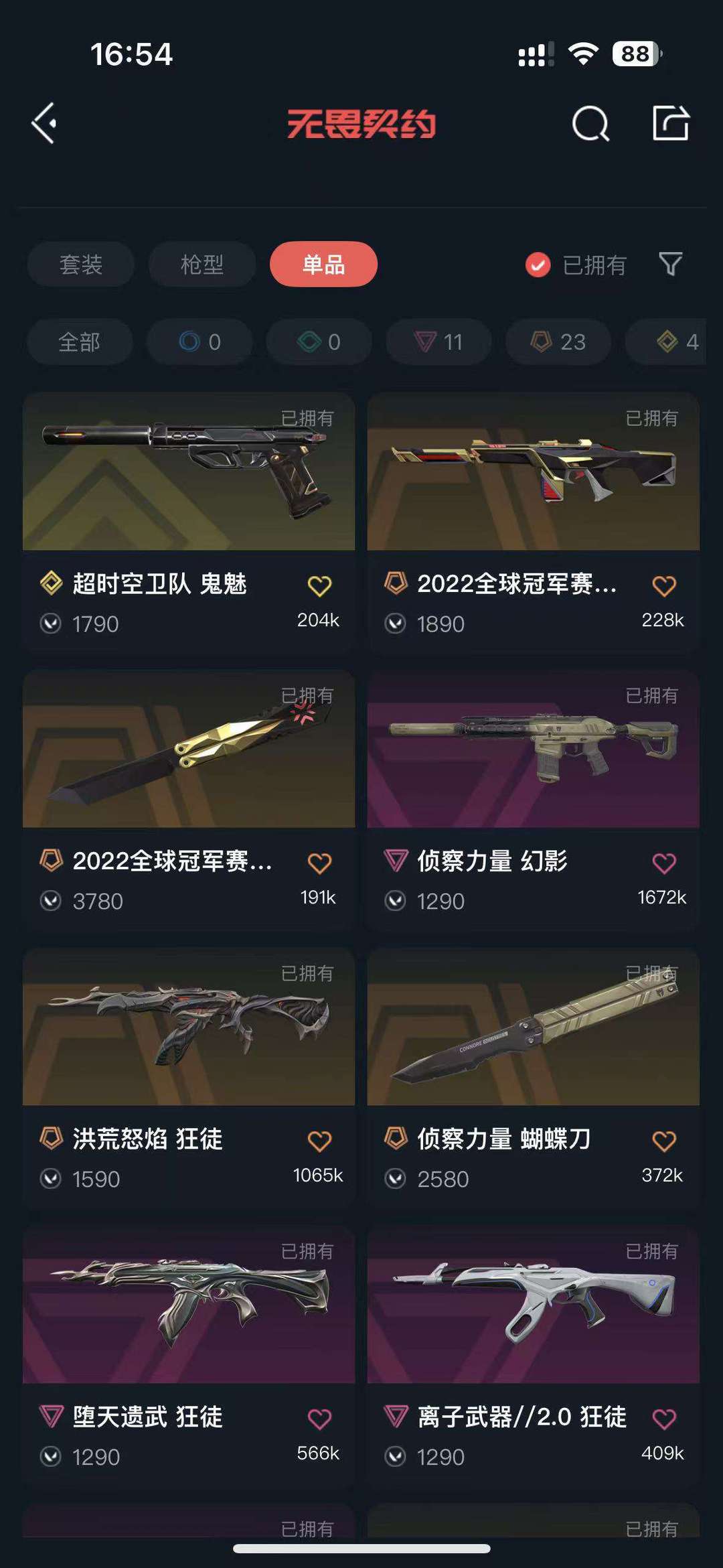 武器皮肤数量:154