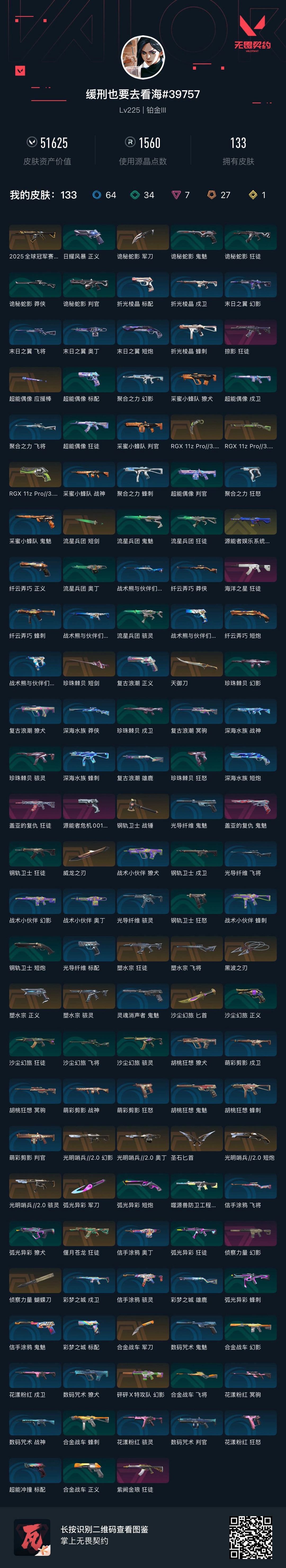 【当前段位:铂 金III】皮肤总价值51625,总皮肤133把,刀皮14把,枪皮119把。