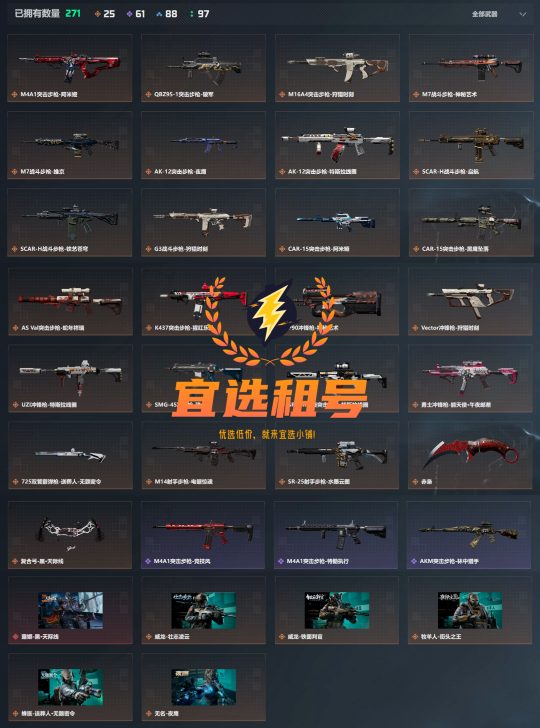 皮肤号 无币皮肤号⚡天际线赤枭全套31金电玩高手优品s⚡战斗部门7+6⚡宜选租号