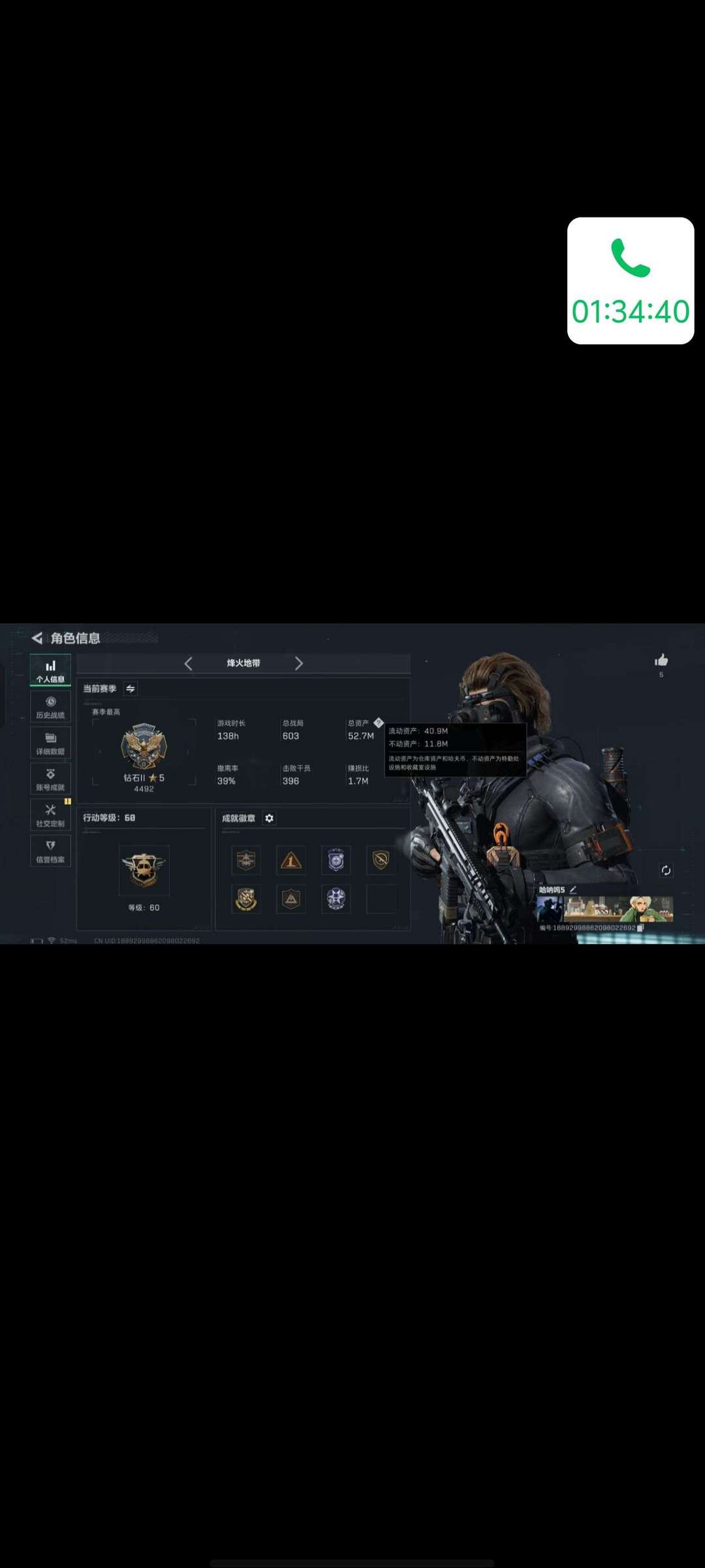 装备描述:60级。训练中心6级靶场6级。封号扣押金时租高是因为有人开挂玩,高押金介意勿扰(封号扣押金) 冻结等3分钟。再登录就可以。如果等了几分钟还是冻结的话,就撤单。