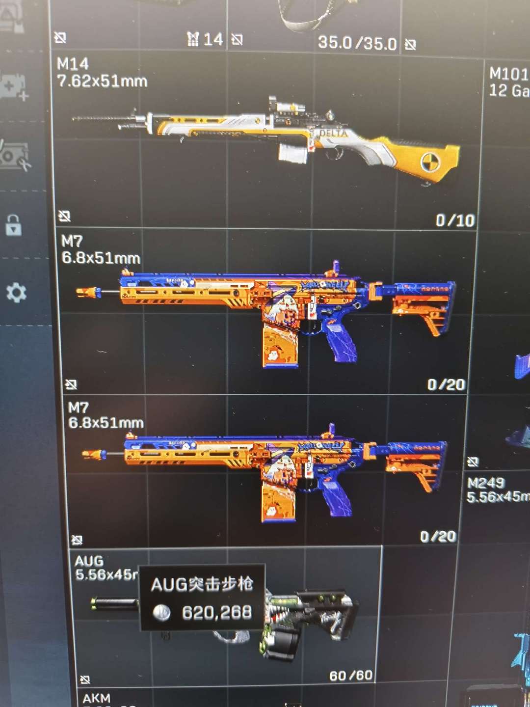 装备描述:6500w哈夫币,10发aw,仓库有裸枪m7和m14以及其他装备和房卡。禁止利用账号进行开挂、使用辅助违规软件诈骗等违规操作。