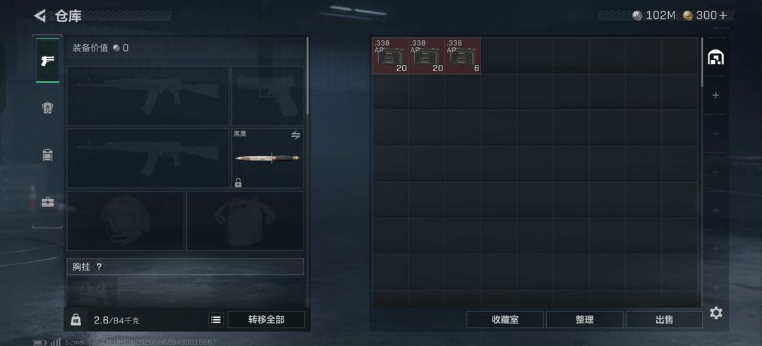 装备描述:AW子弹46发,纯币102M,女医红皮,上号有问题随时可以