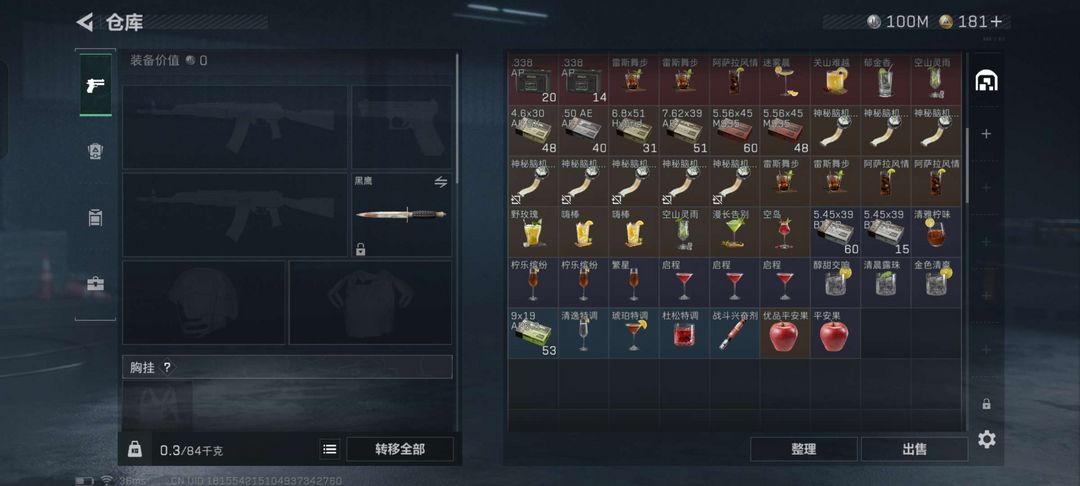 亿级哈夫币 34发AWM子弹,100M纯币,仓库20杯8+1战斗饮,红皮骇爪,活动红狼皮,两件六甲可用