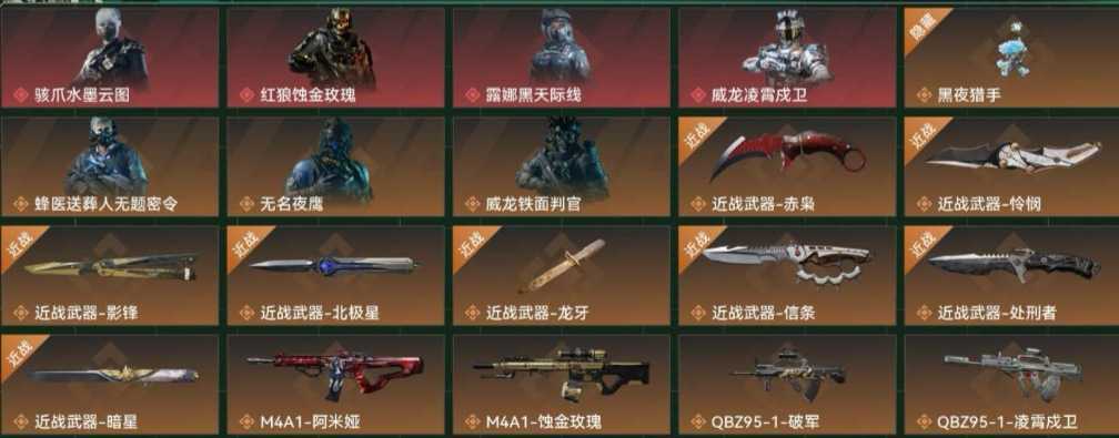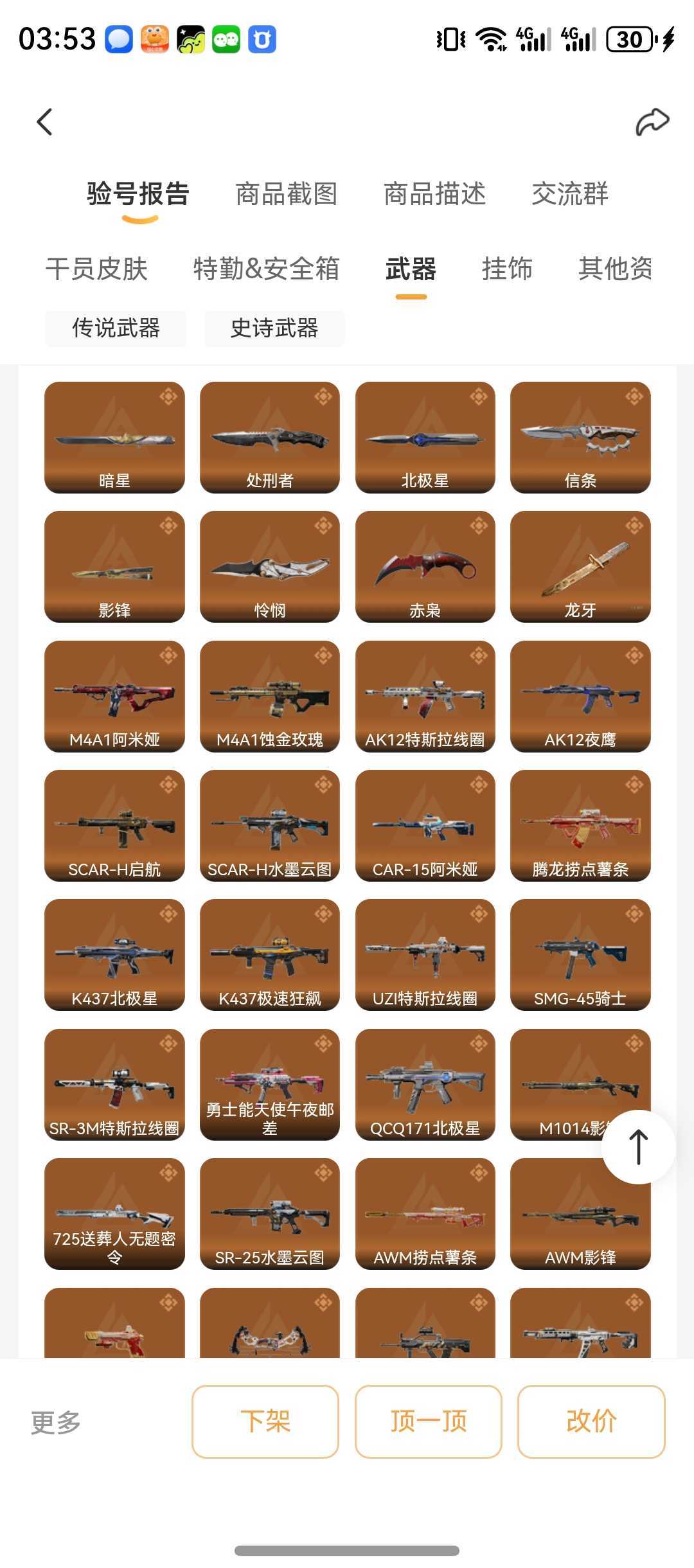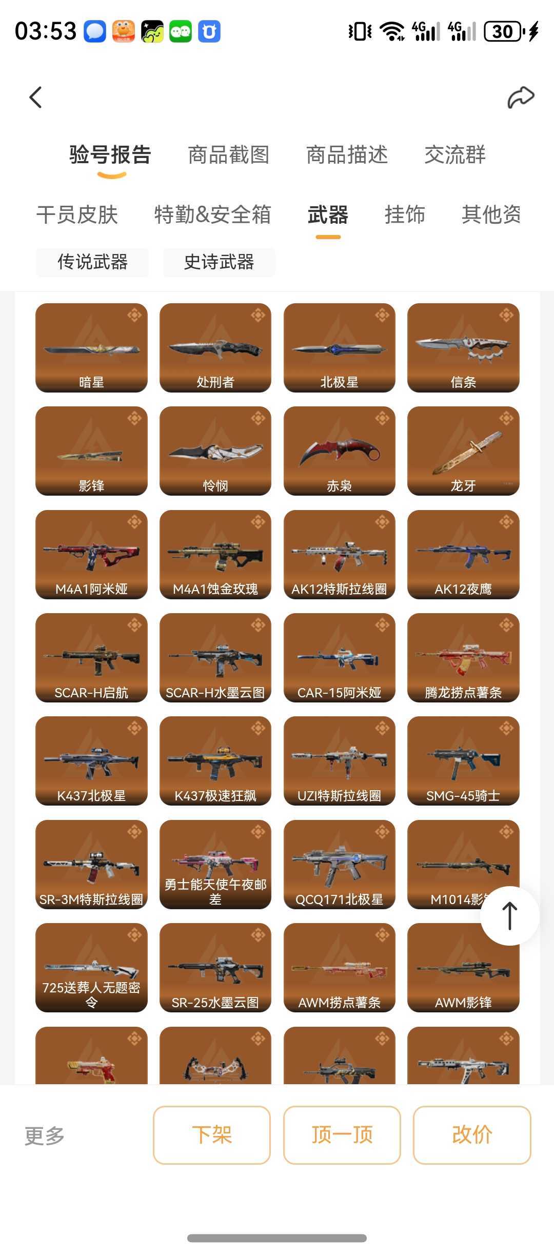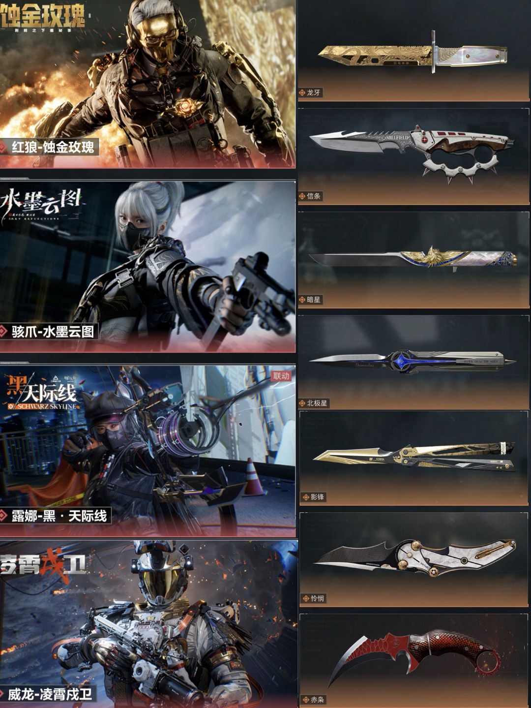 皮肤号 101店铺❤️上不去aiyue888-⭐4红/8刀/威龙/暗星/赤霄/怜悯/蝴蝶/北极星/龙牙/信条