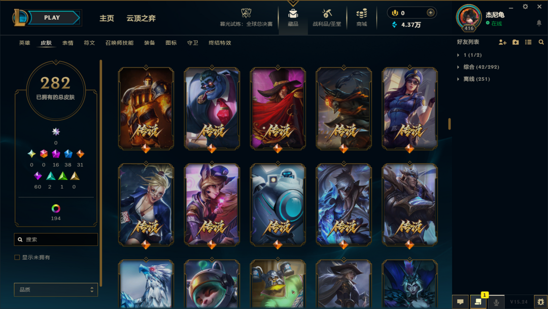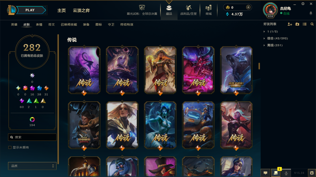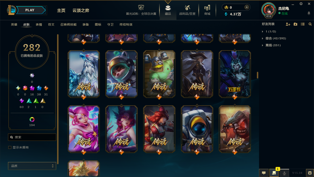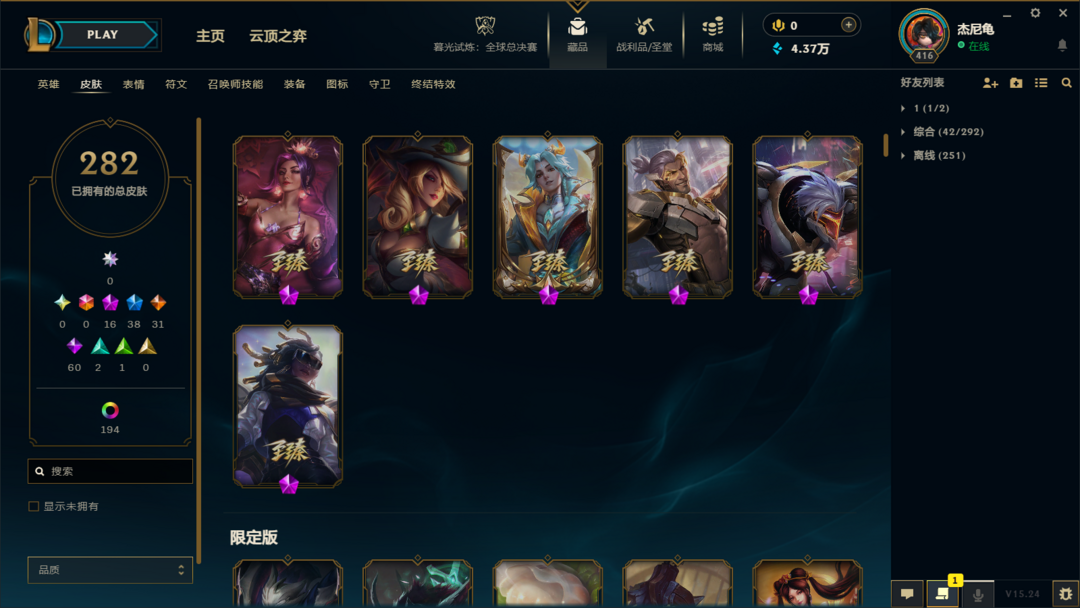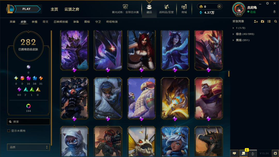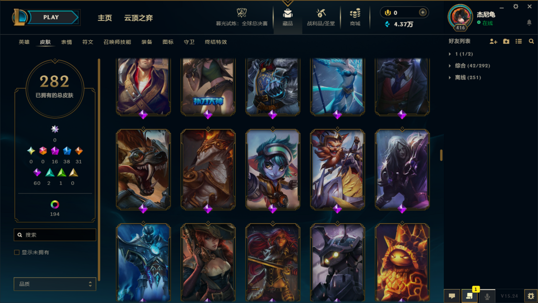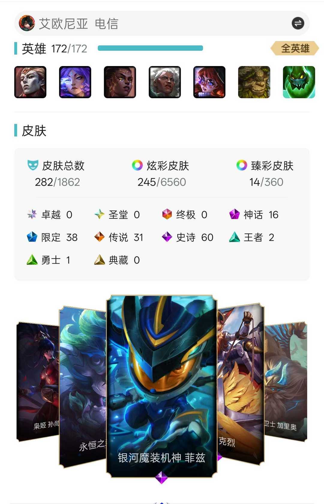 【艾欧尼亚】300皮⚡15至臻神话⚡全英雄⚡神龙李青⚡龙琴⚡鳄加斯⚡泳池日女⚡冠军锤石滑板鞋