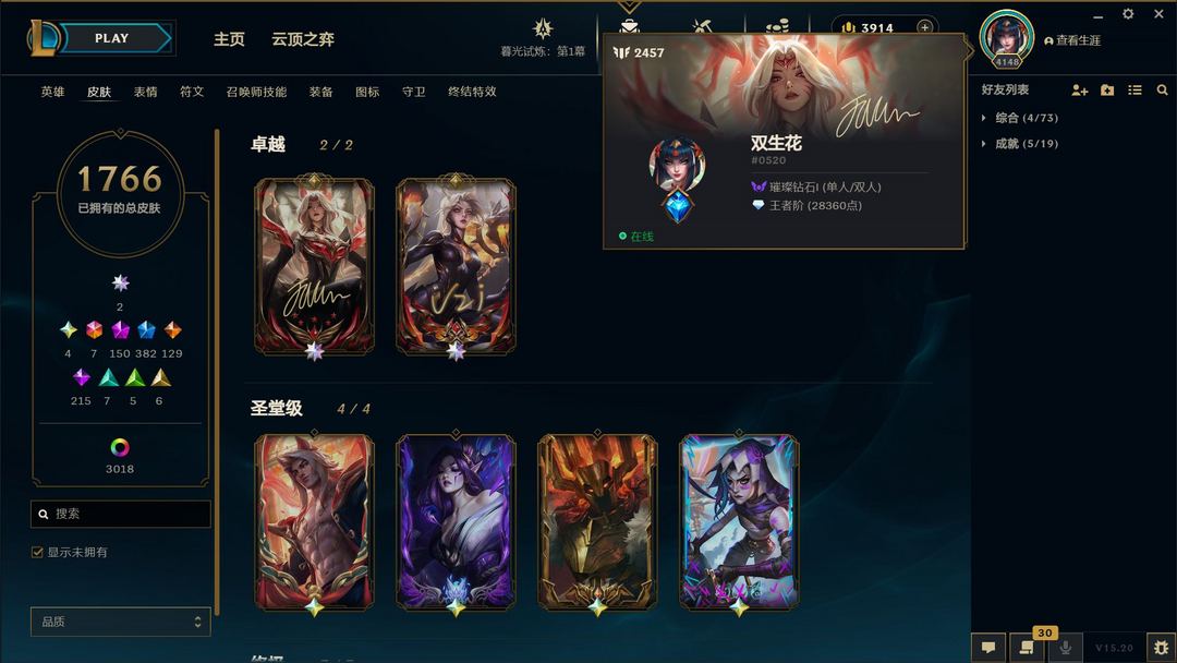 1773皮+3000炫124臻彩⚡签名阿狸卡莎+全圣堂+新T1战队⚡全至臻全年限⚡禁排位请勿逃跑