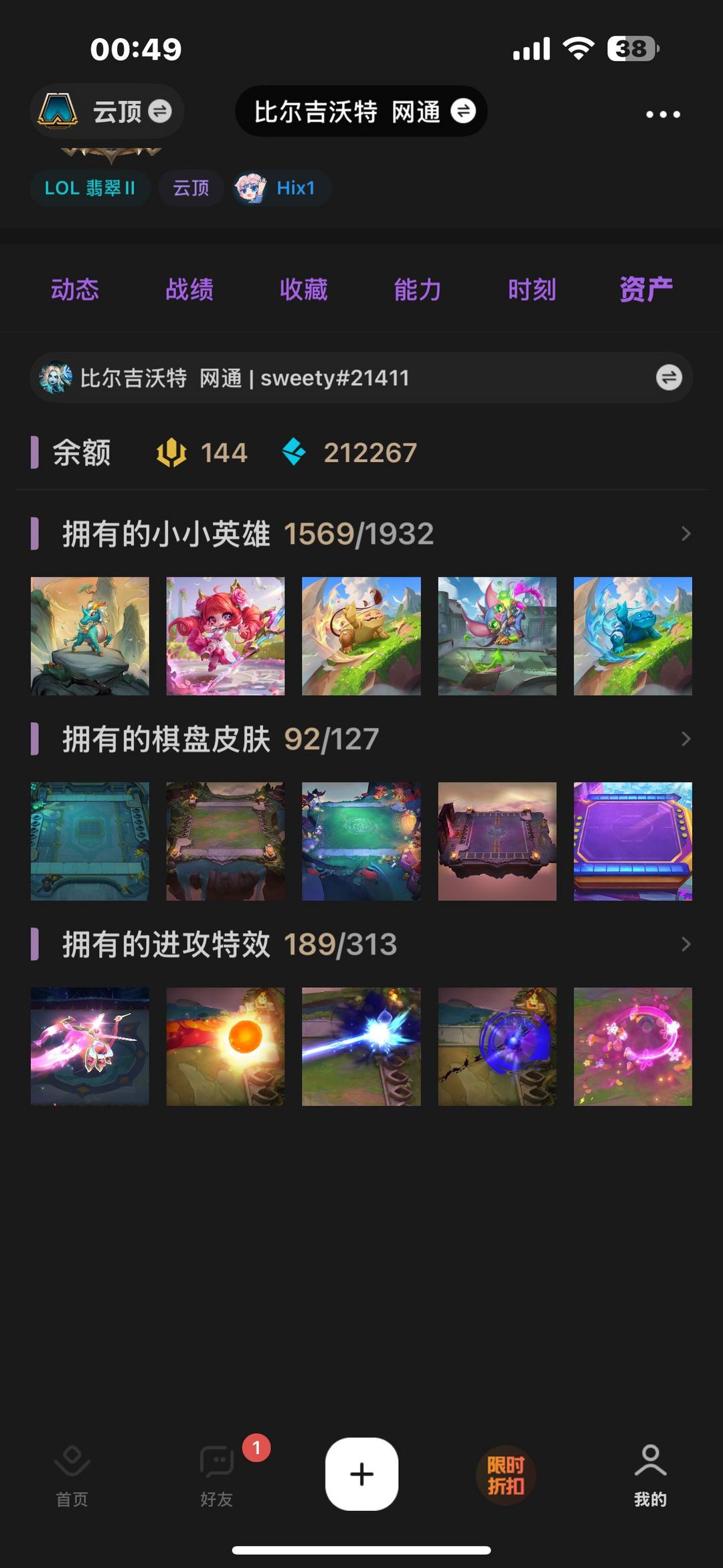 装备描述:大乱斗云顶极品号 皮肤 炫彩 小小英雄 棋盘几乎全满 禁止利用账号进行开挂、使用辅助违规软件诈骗等违规操作。