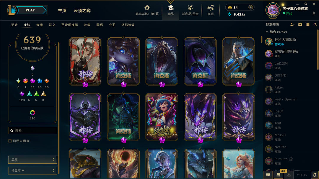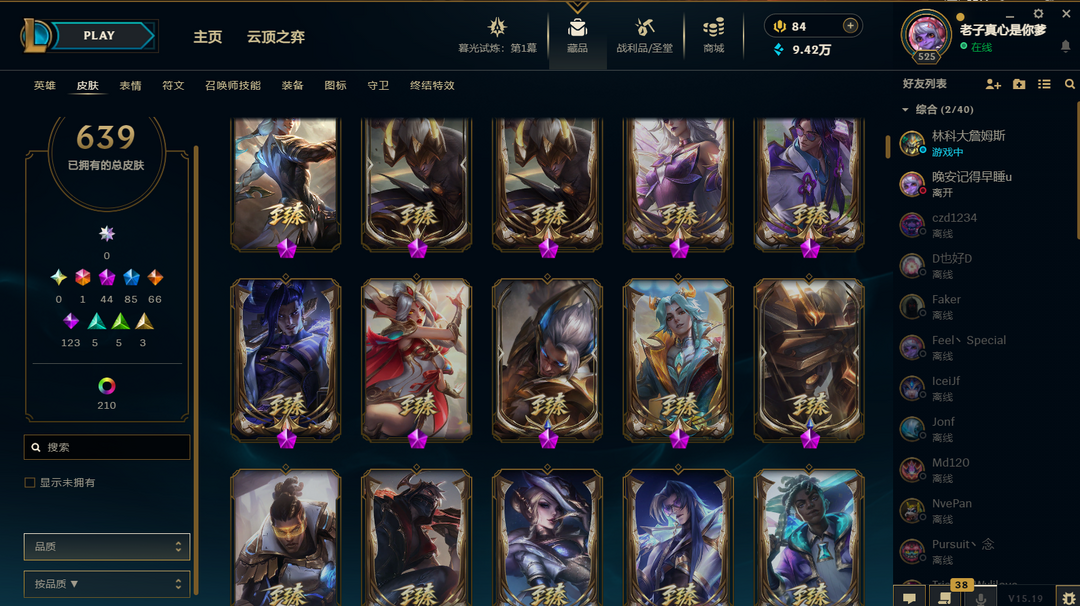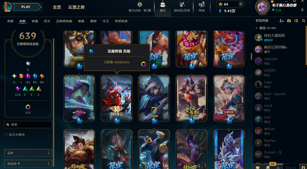 装备描述:600皮热门皮都有玉剑男刀edg剑魔佛爷双神王kda卡莎至臻伊芙琳至臻
