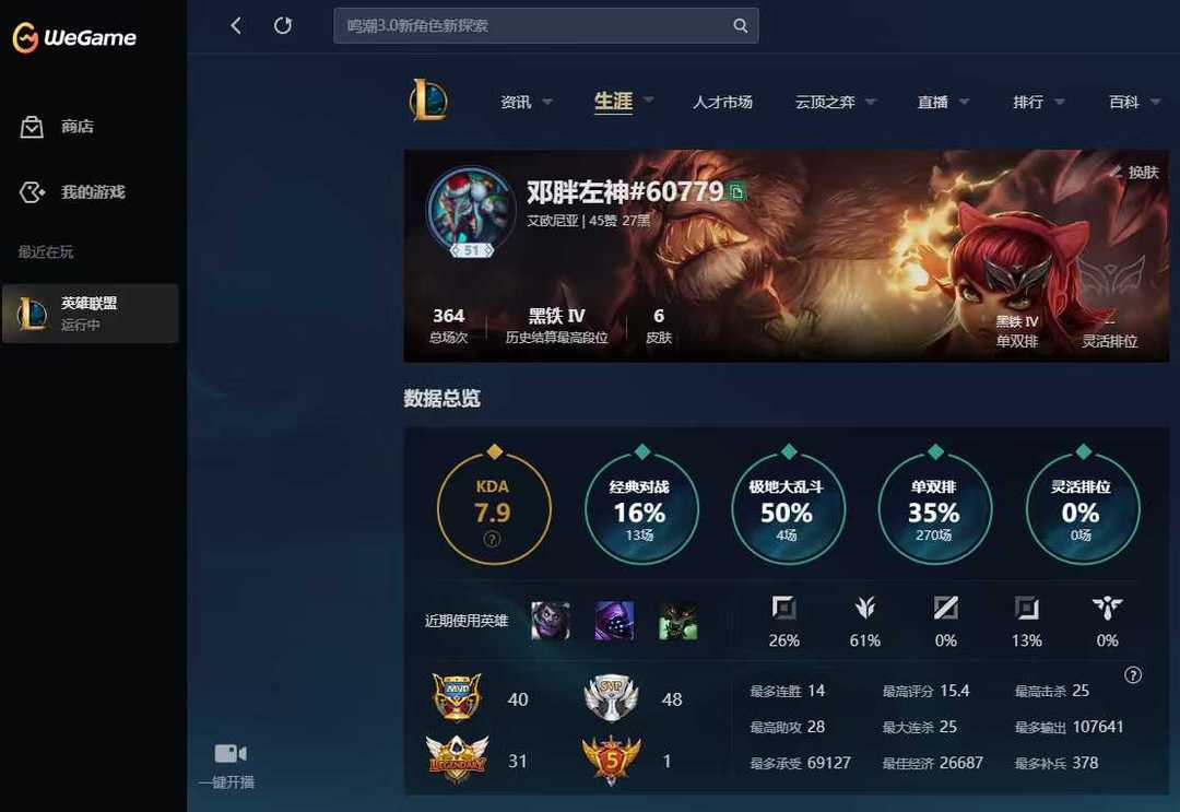 2 百场 35 胜率 极品负胜率号❤️ 炸鱼带妹真实段位❤️黑铁 4 可排