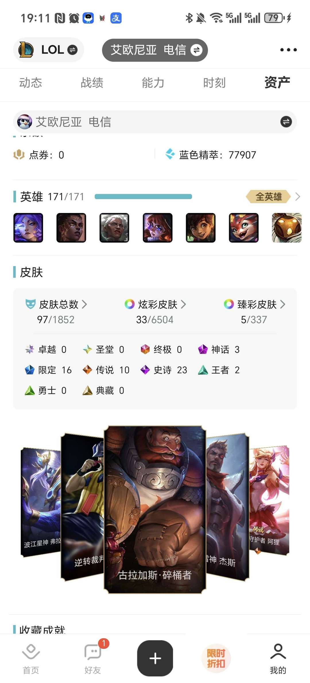 装备描述:皮肤100左右,全英雄,可以打任何模式,不开挂就行,绿色游戏