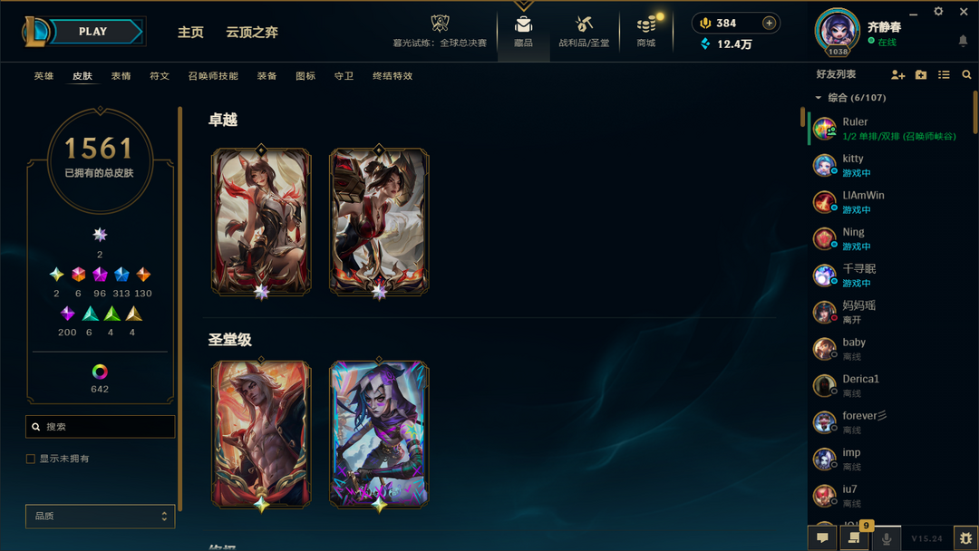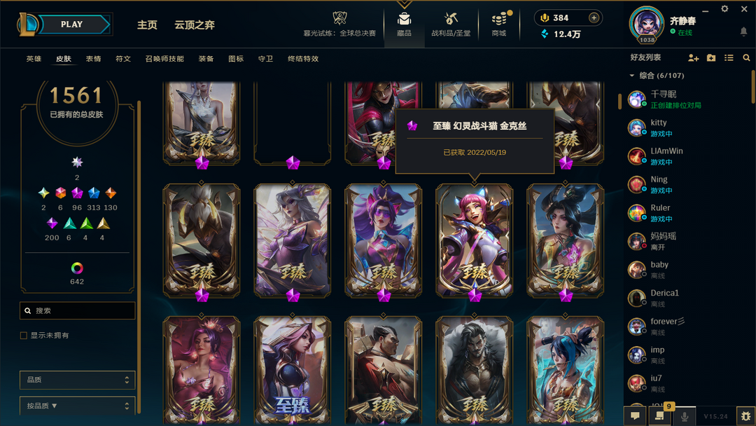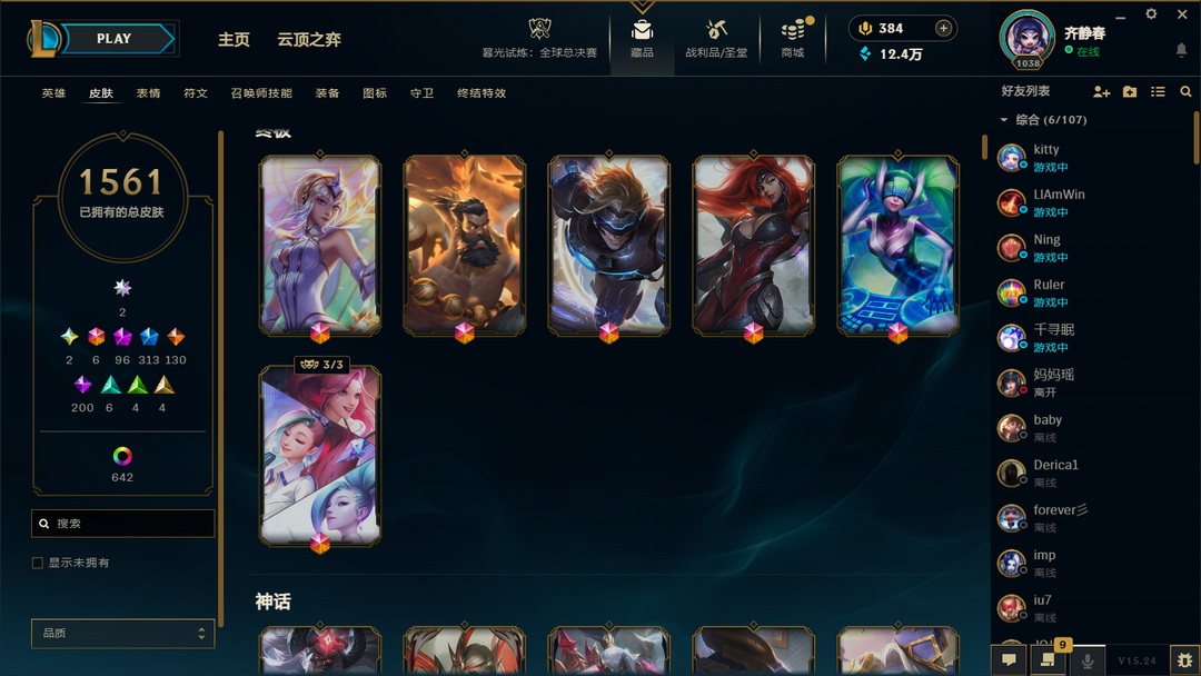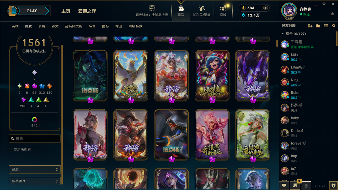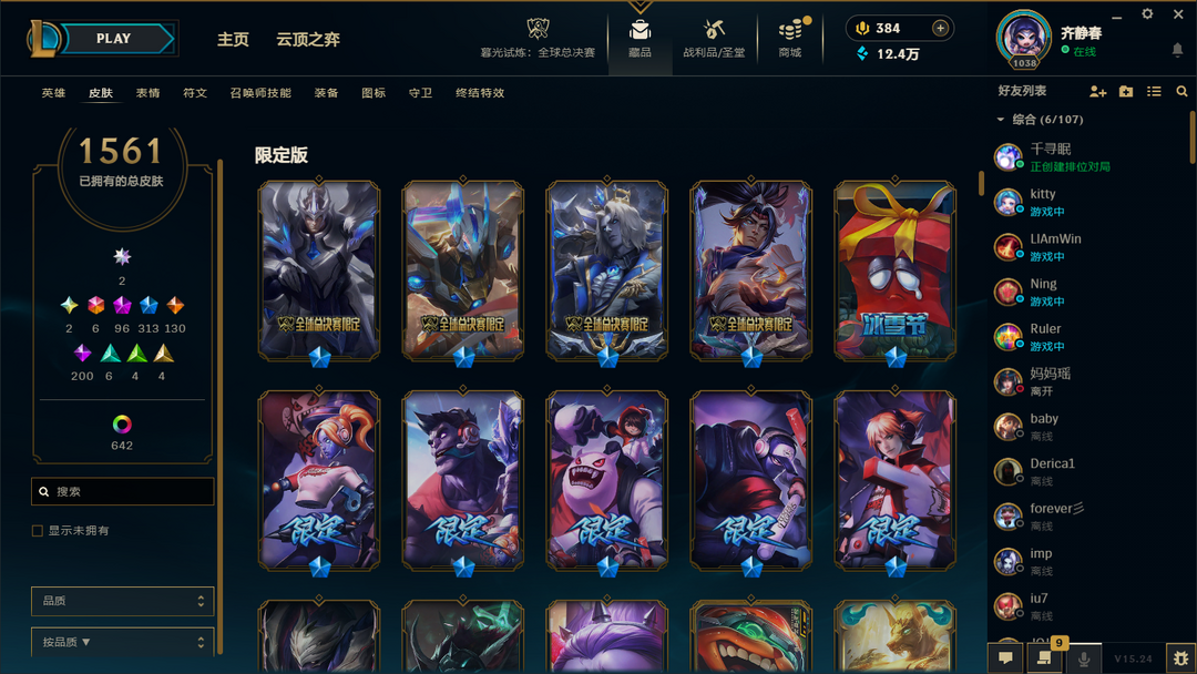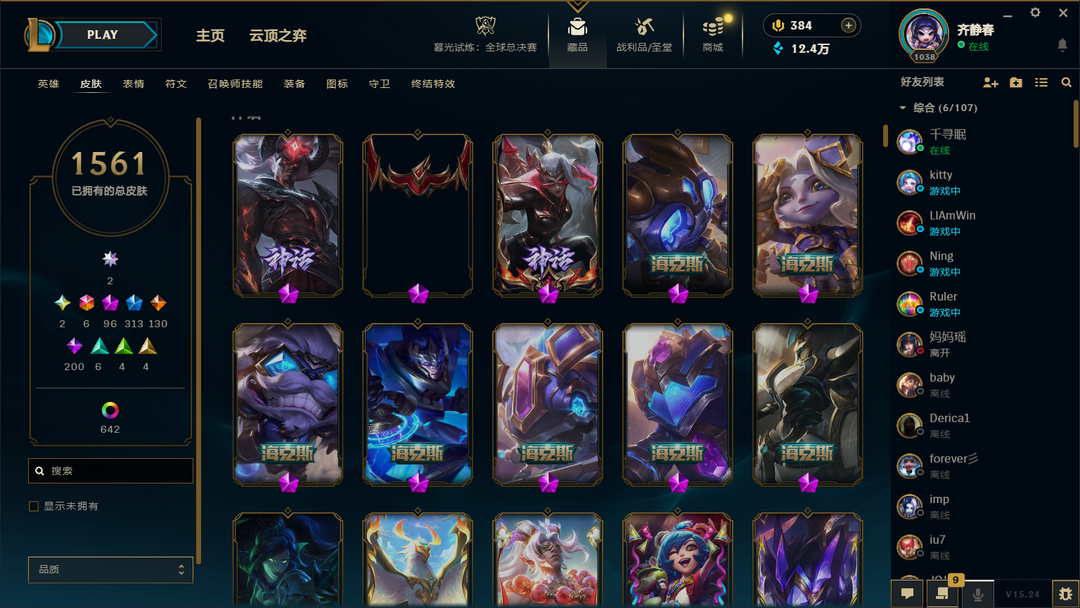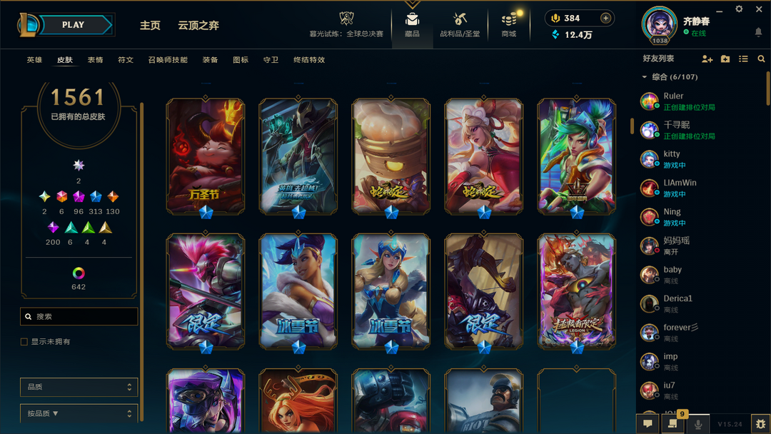 1561皮,各种冠军套装,年限定,龙瞎什么的各种