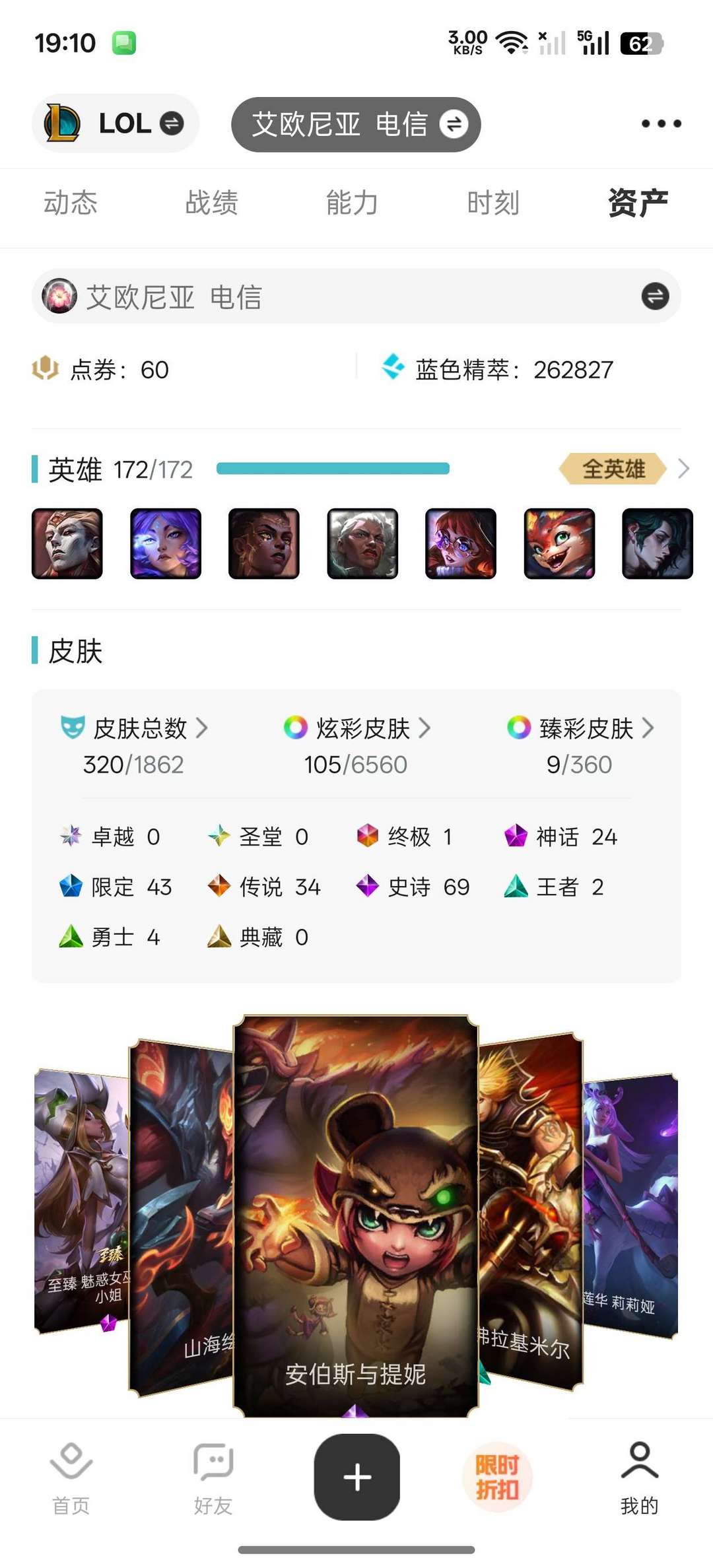 全英雄,300+皮肤初二代至臻卡莎等皮肤