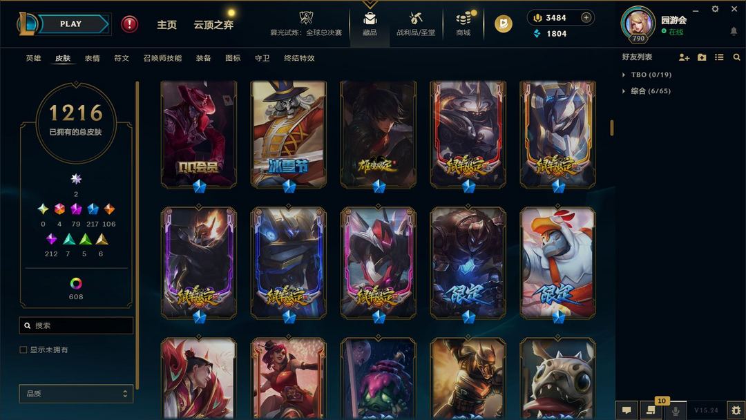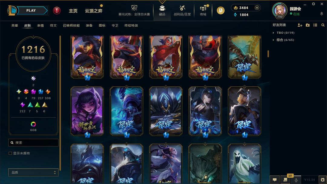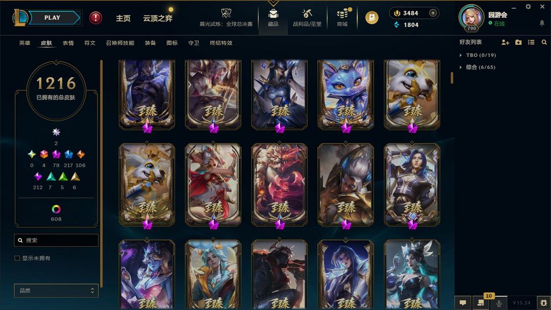【LOL大王】2000P乄1275原皮乄751炫彩乄79神话乄216限定乄殿堂卡莎乄殿堂阿狸