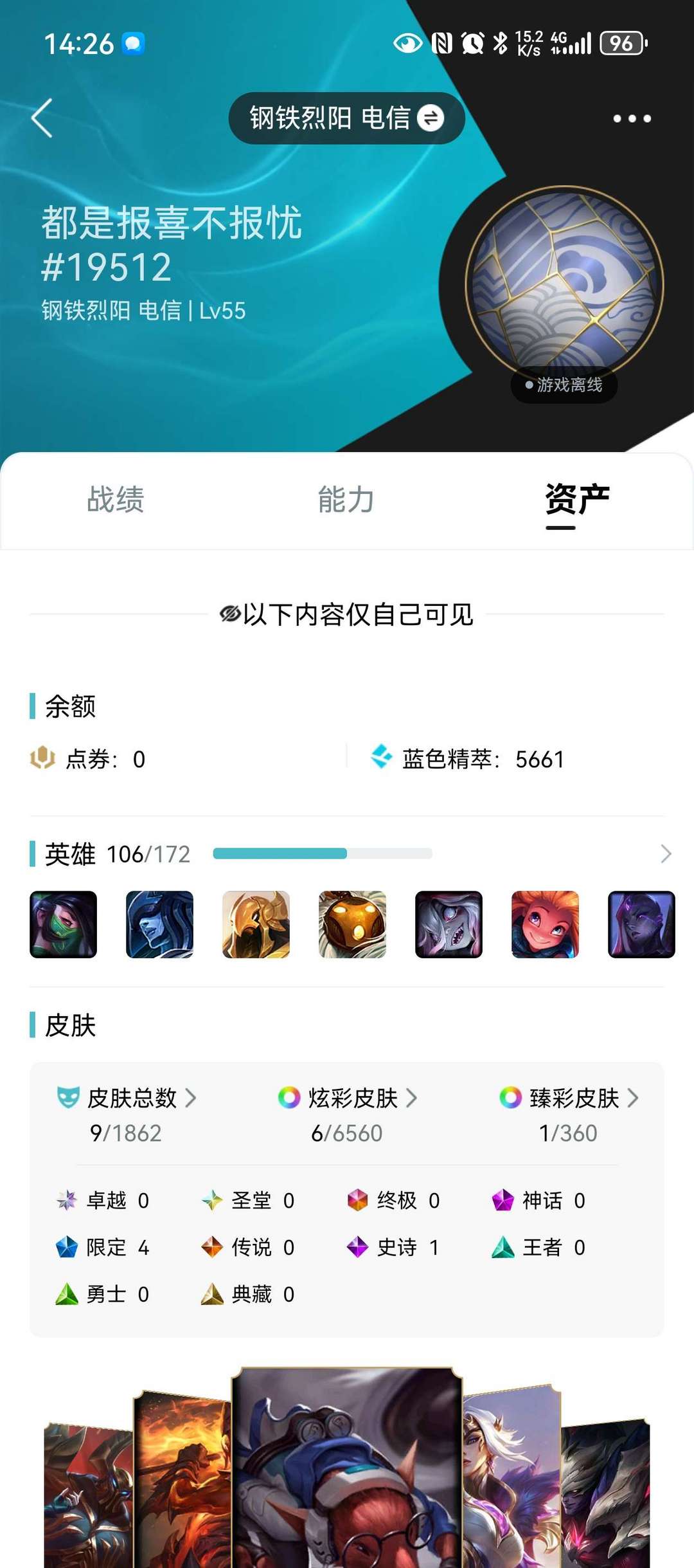 白板无皮肤钻石号,可排位练英雄,不可使用账号上的物品,可加好友