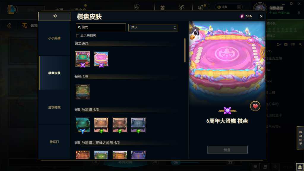 装备描述:云顶极品号有至臻咖啡厅格温至臻龙的传人差不多20个神话小小英雄两个传说棋盘。可下棋可大乱斗
