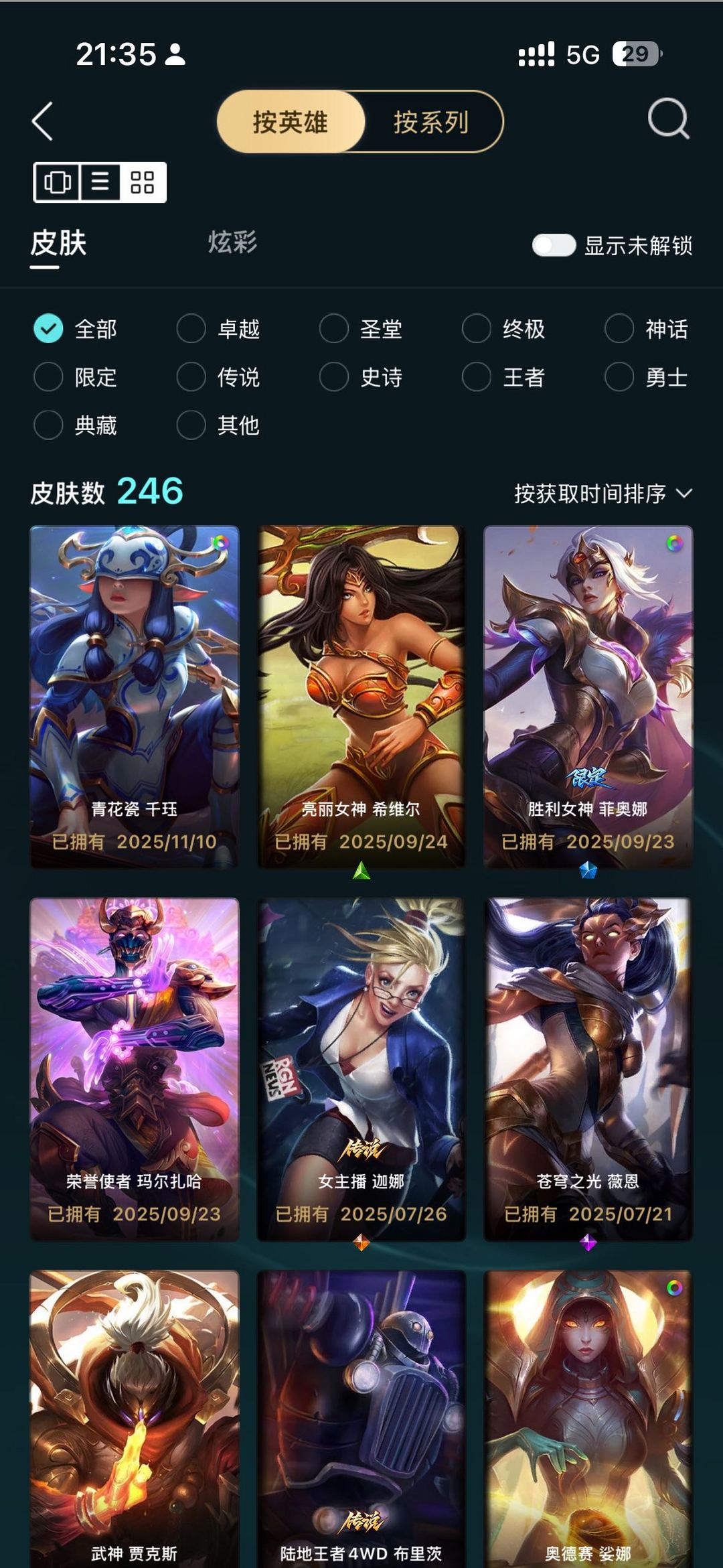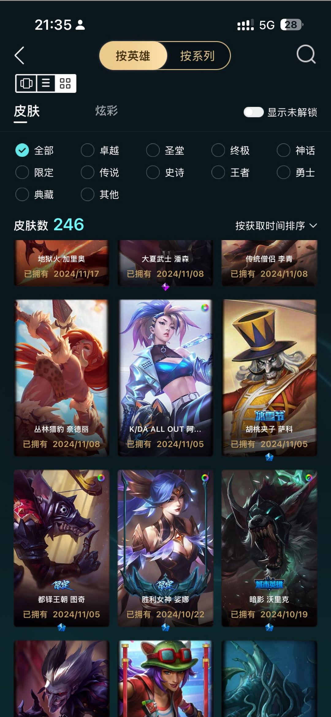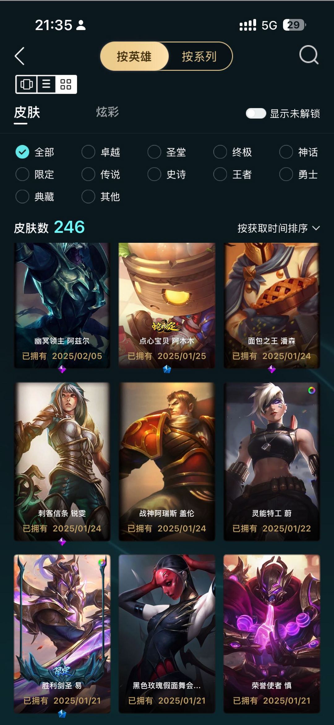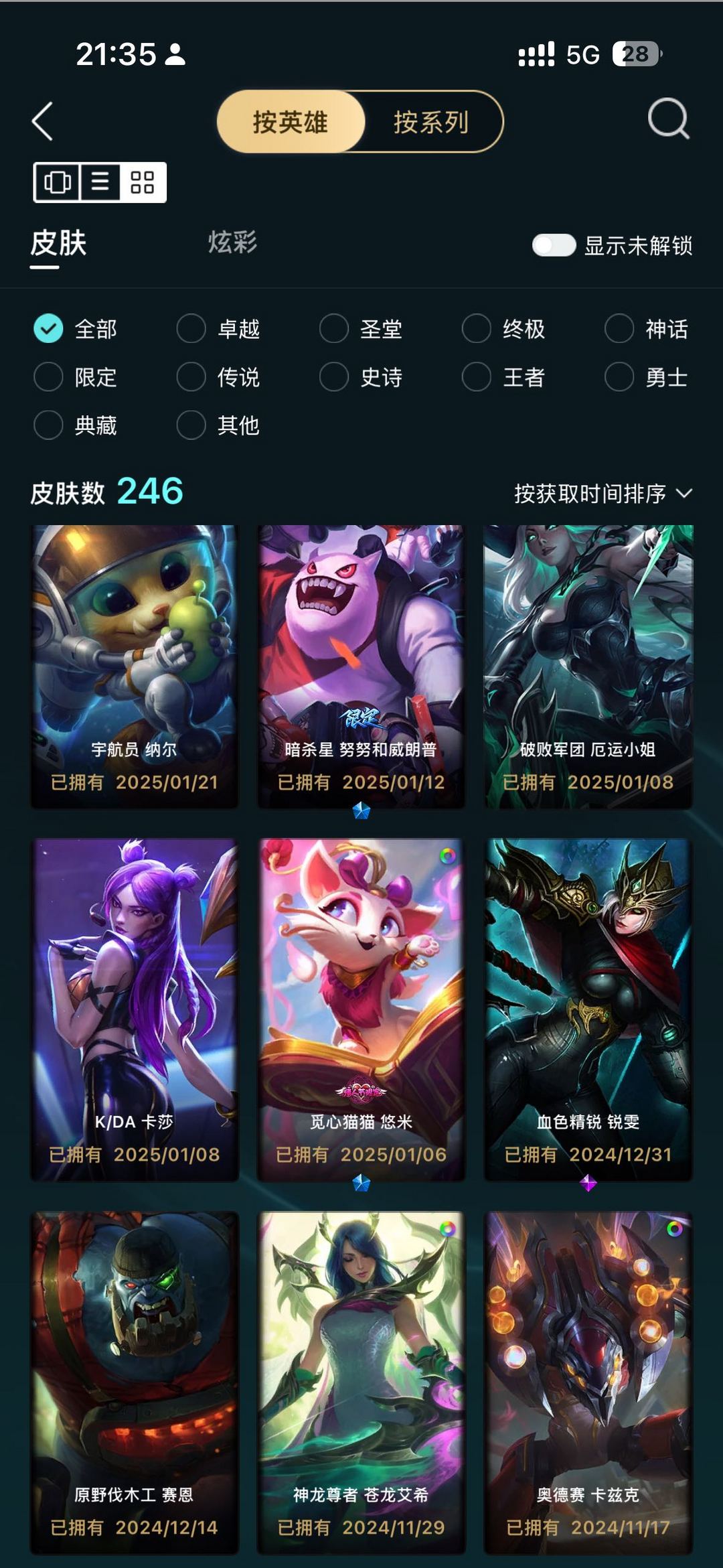 200多个皮肤 未来战士锤石 御剑传说剑姬 kda卡莎阿卡丽等等