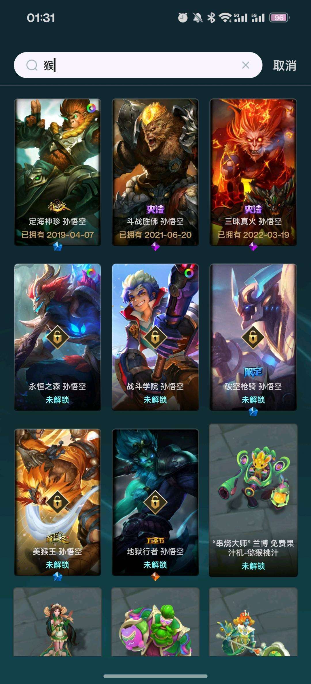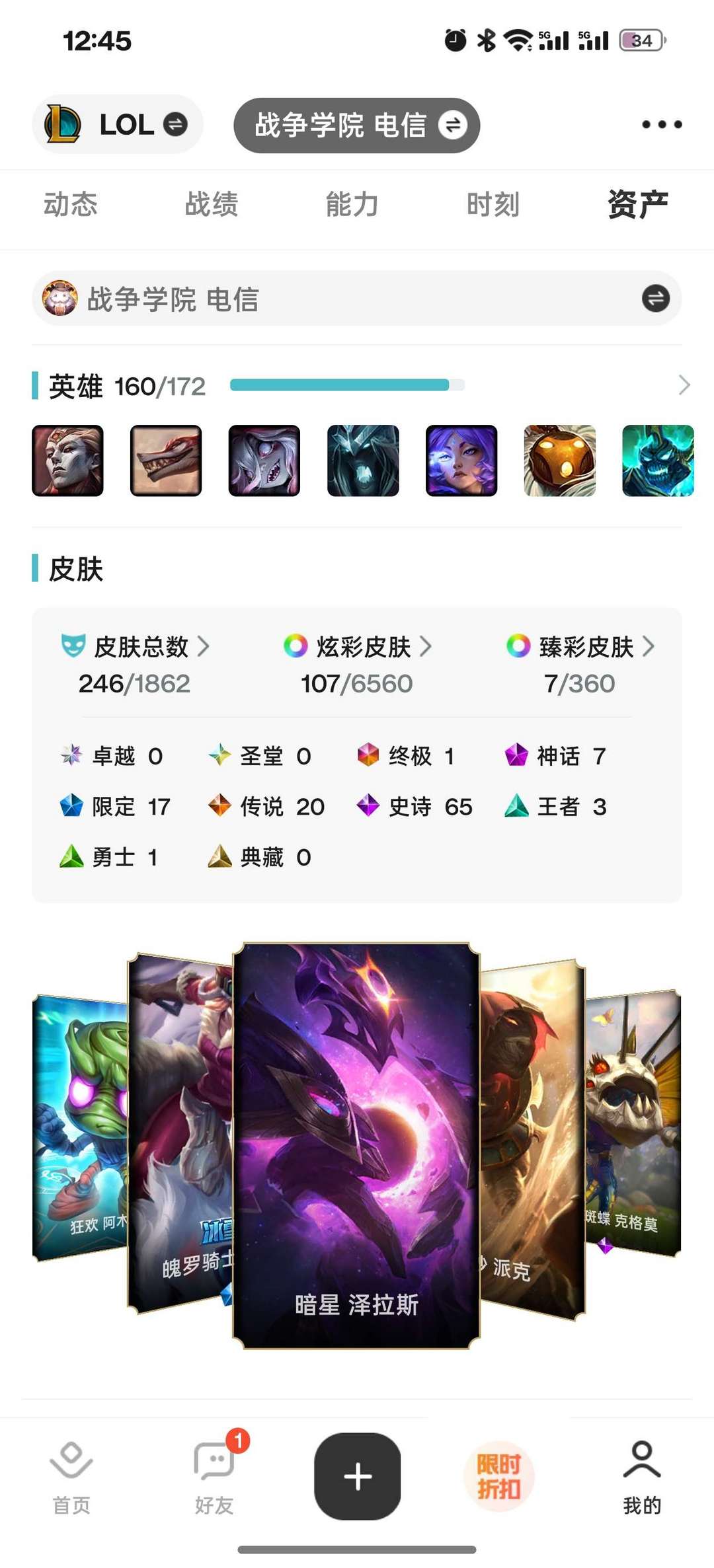 装备描述:160英雄❤️246原皮❤️龙年限定男刀❤️龙年限定猴子爱心可排位