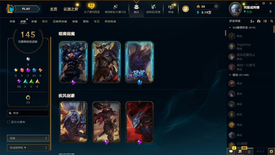 装备描述:全英雄145皮肤奥德赛亚索霸天剑魔赵云之龙